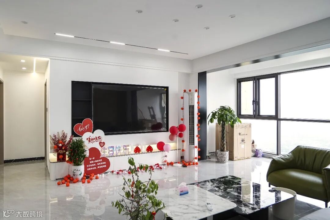 灰色的大沙发还留着刚拆封的新味,牛油果绿的单人椅是我当初一眼看中的 “点睛之笔”,黑白大理石的茶几上,还放着刚拆的搬家快递。可就是这些还带着 “新” 的物件,因为这一地的红,瞬间有了家的温度。