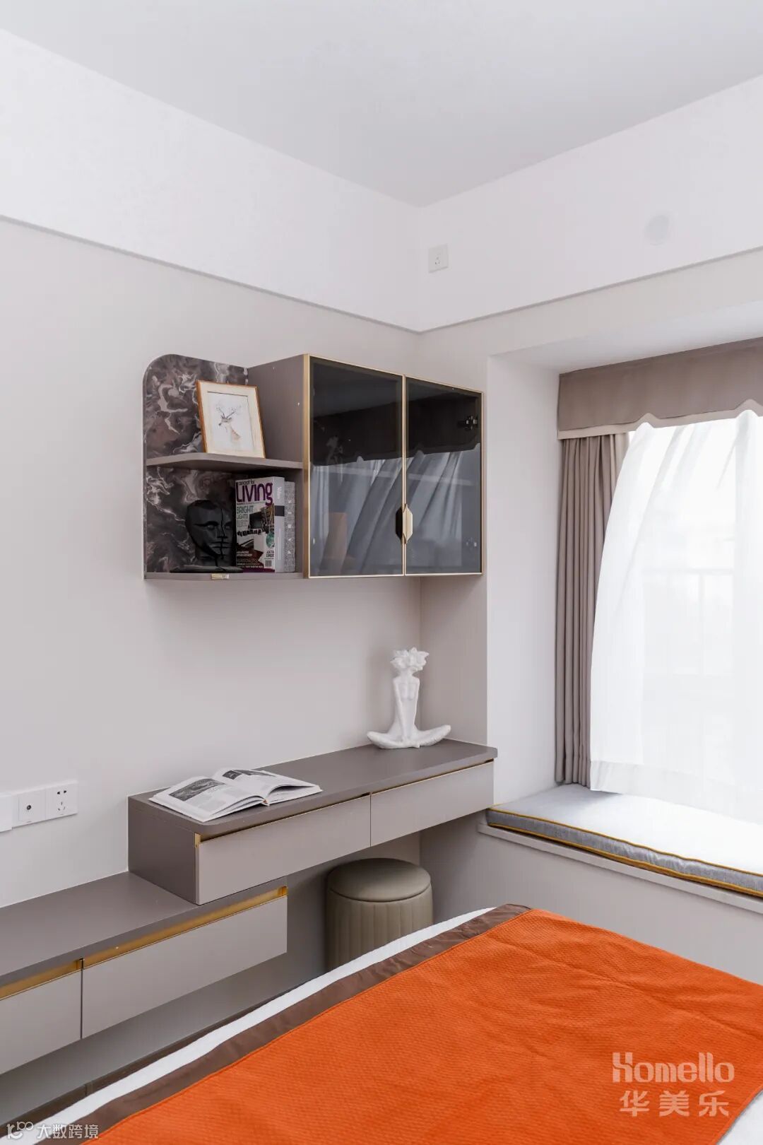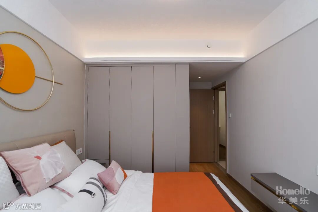 主卧当中是最需要私密性的空间,莫兰迪的低饱和色系,添一抹含蓄,整个空间精致的布局营造出整个空间当中的温馨感。