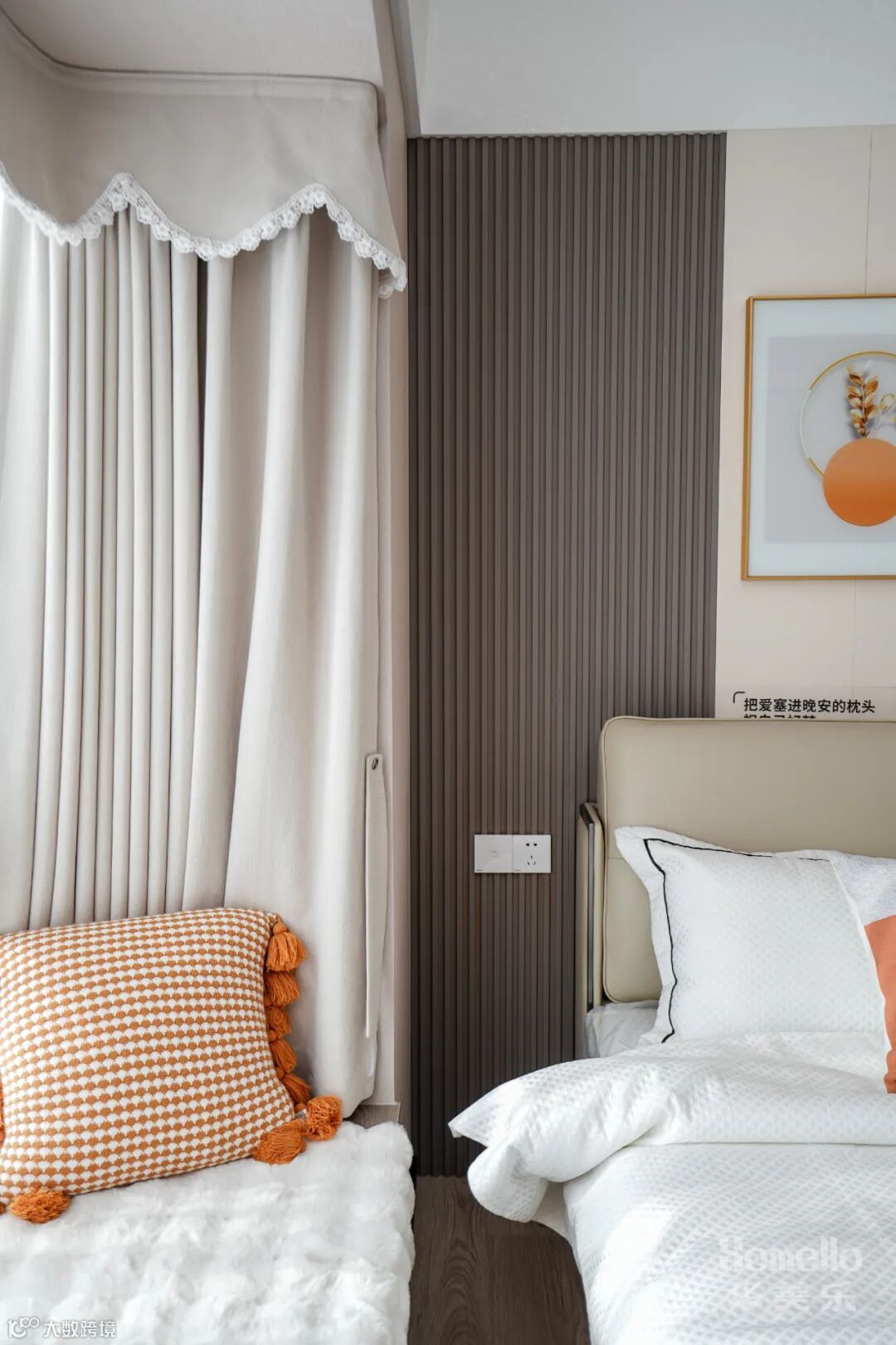 大面积墙面用上木饰面,当你轻轻触摸它时,你能感受到一种温暖和舒适。
