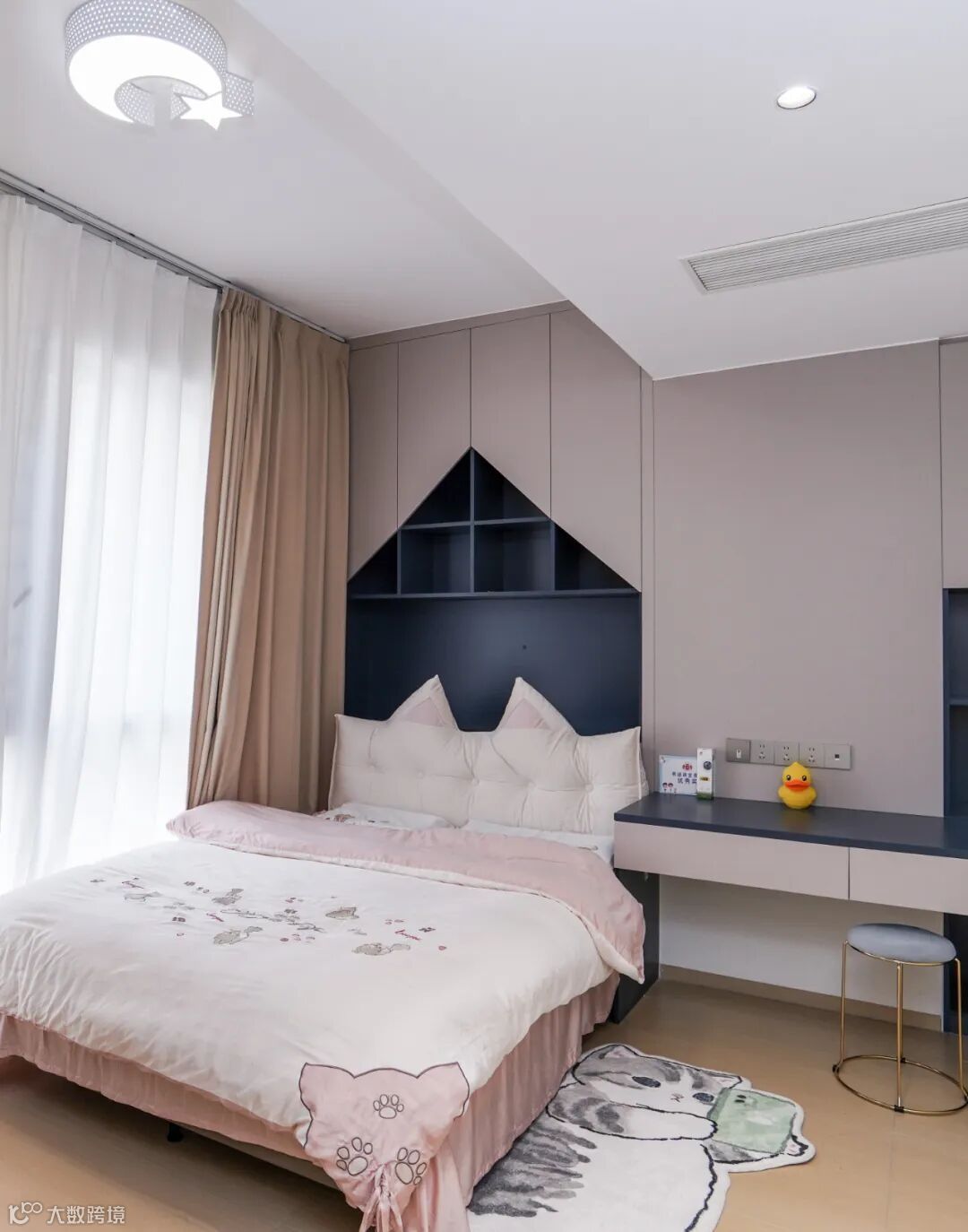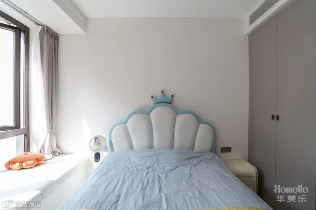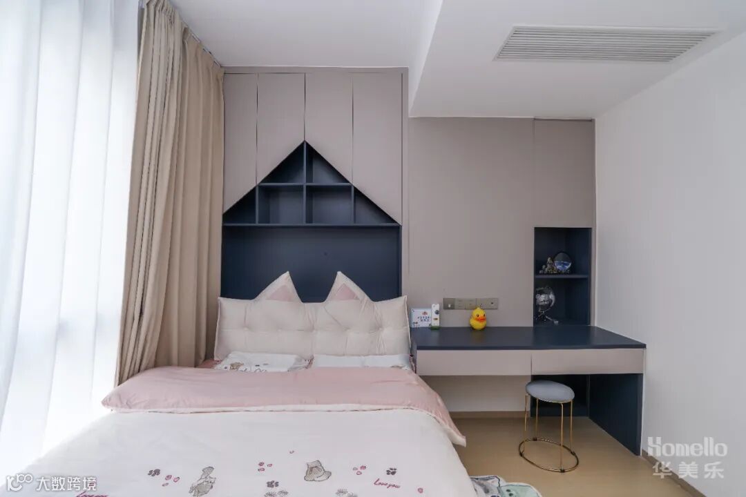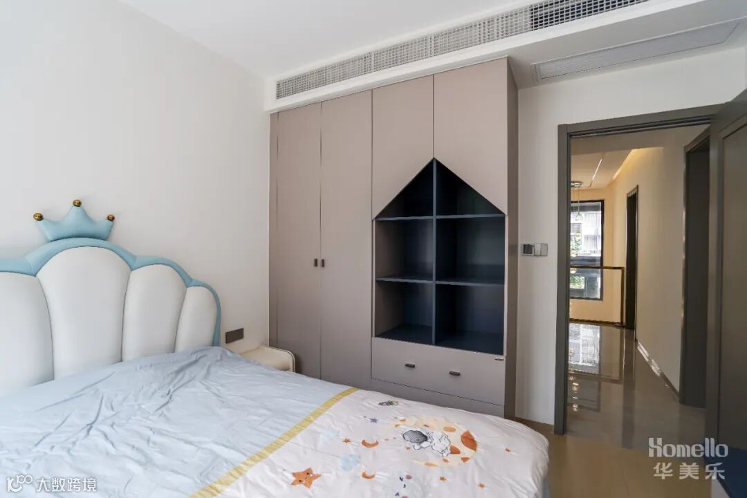 儿童房的配色清爽舒服, 童趣细节满满,一部分空间打造成学习环境,房间每一部分空间都实现有效利用,实用收纳兼顾阅读氛围。