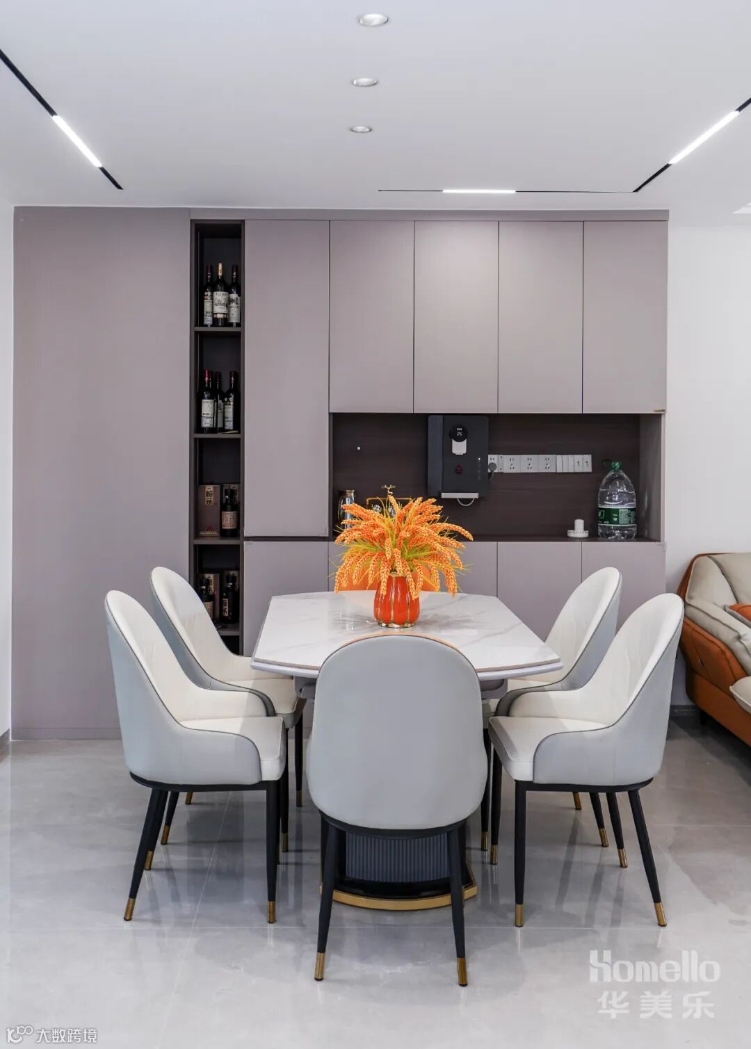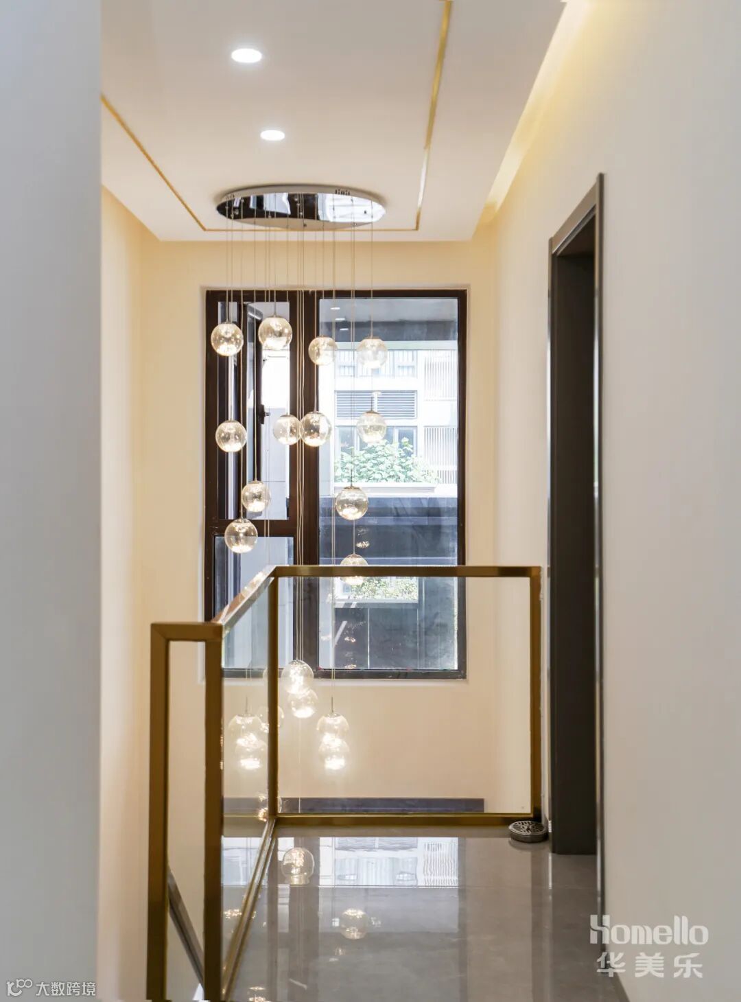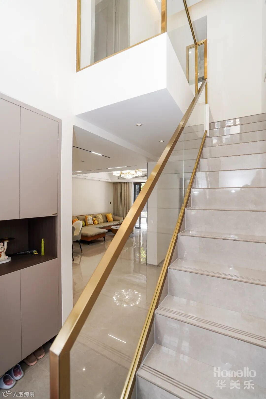 通刷大白墙、通铺大理石地板提高了室内明亮度, 双眼皮吊顶搭配水晶吊灯,简约的同时带出高级感。