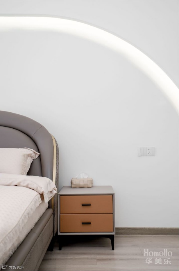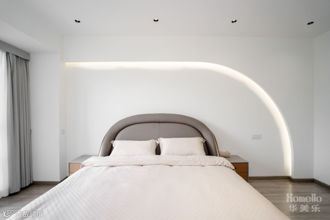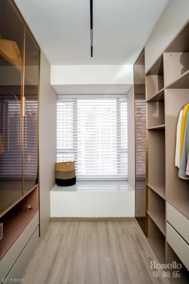 原主卧与客卧空间打通,形成一个与衣帽间一体的大套房,满足了屋主希望拥有独立衣帽间的需求。