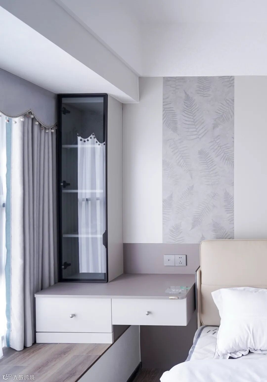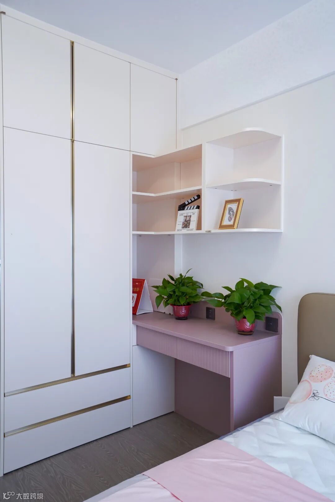 做了一整排的床尾衣柜+飘窗卡座+悬浮梳妆台,收纳颜值双杀‼