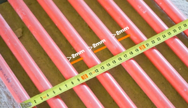 1、地面线管铺设时线管与线管之间固定间距不小于2CM,防止水泥砂浆层未和原基层粘合引起地砖空鼓。