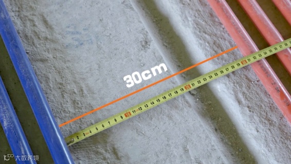 1、红蓝线管分开布设,间距30CM,红色线管布强电,蓝色线管布弱电;