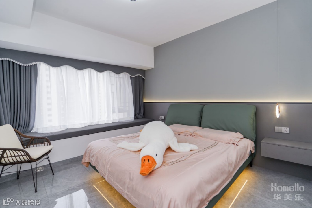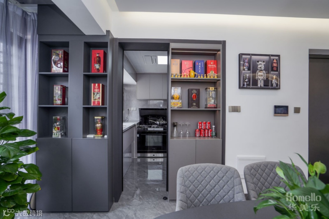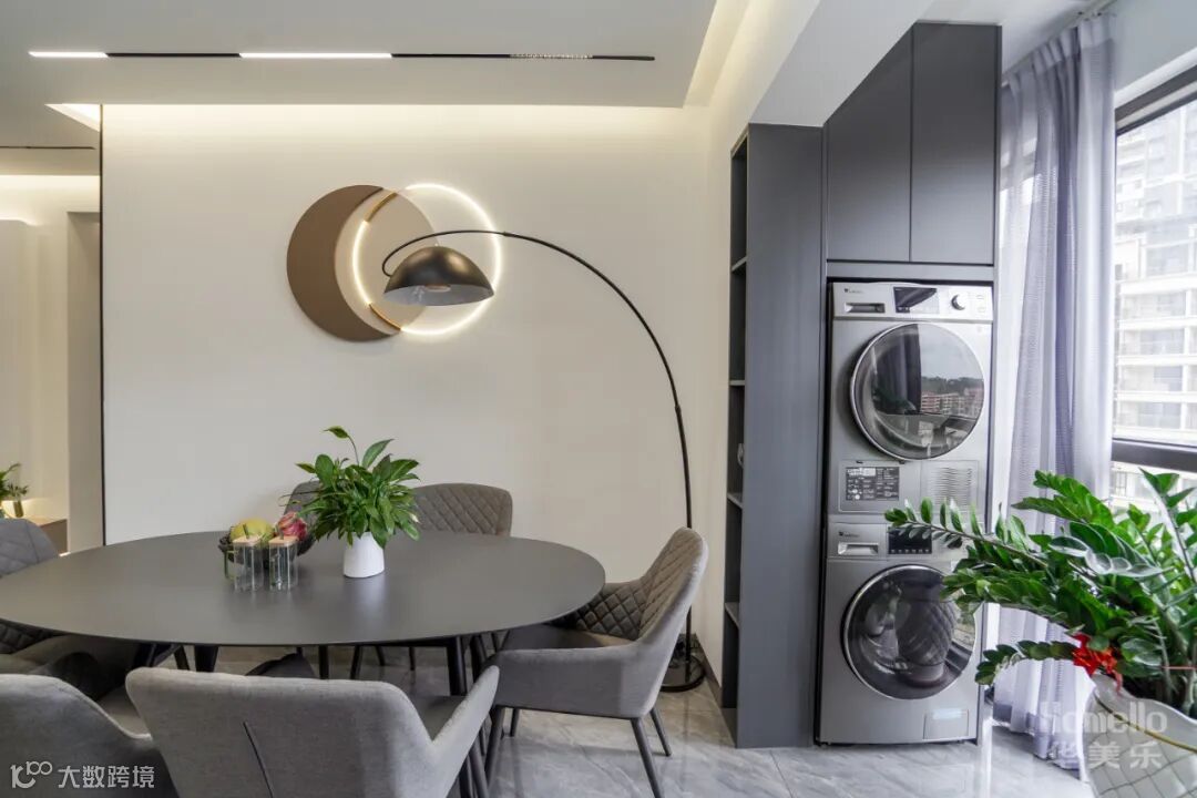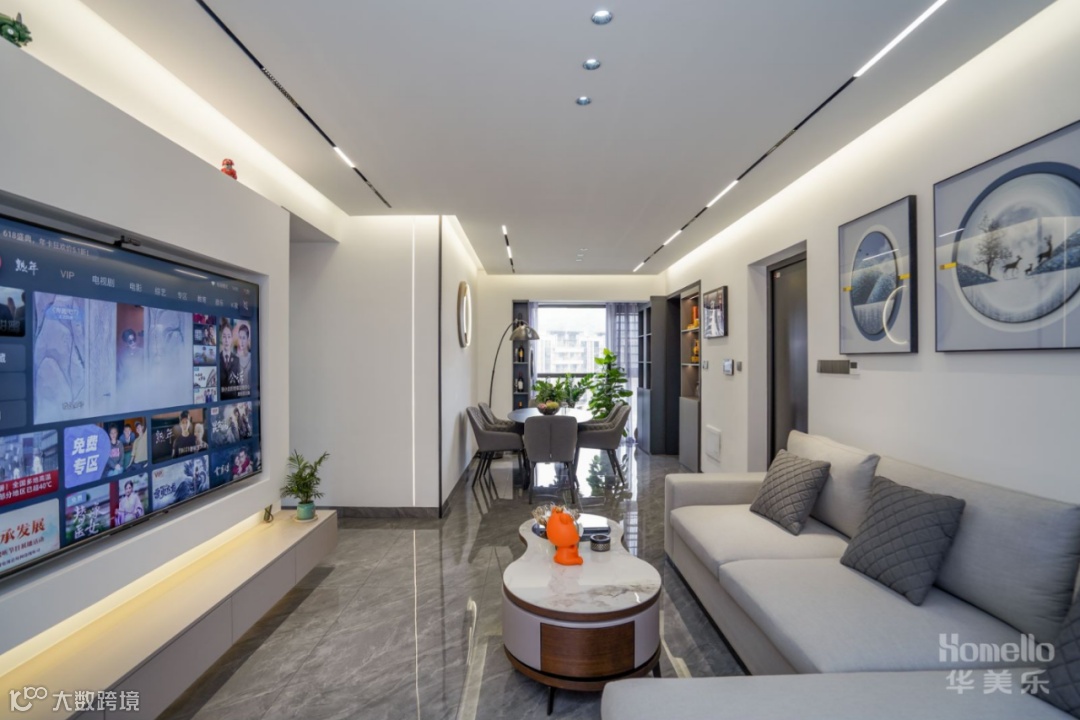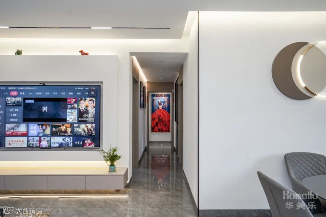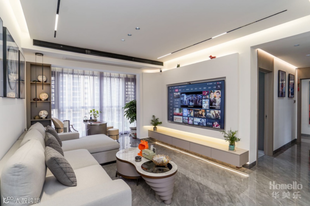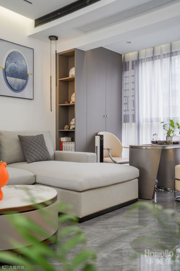 导读:—— 现代轻奢风: 双阳台的户型结构增加了空间的光感,弧线的介入中和了空间的气场