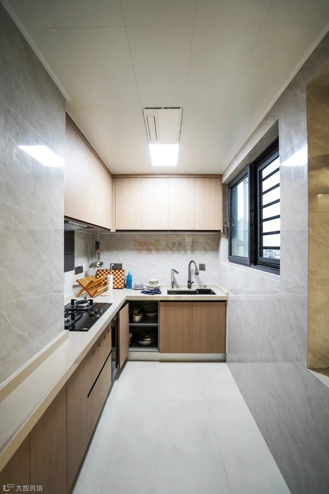 告别了传统单一配色,选用了撞色设计,奶油白操作台面+胡桃木色橱柜的碰撞,温馨又治愈!