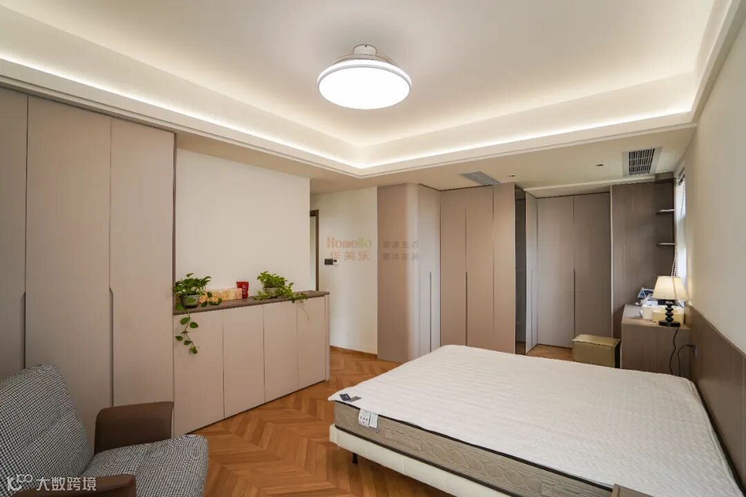 主卧够大够宽敞,色彩搭配上注重宁静和舒适,结束一天的疲惫躺在床上的感觉才是最放松的时候,一间舒服的卧室尤为重要。