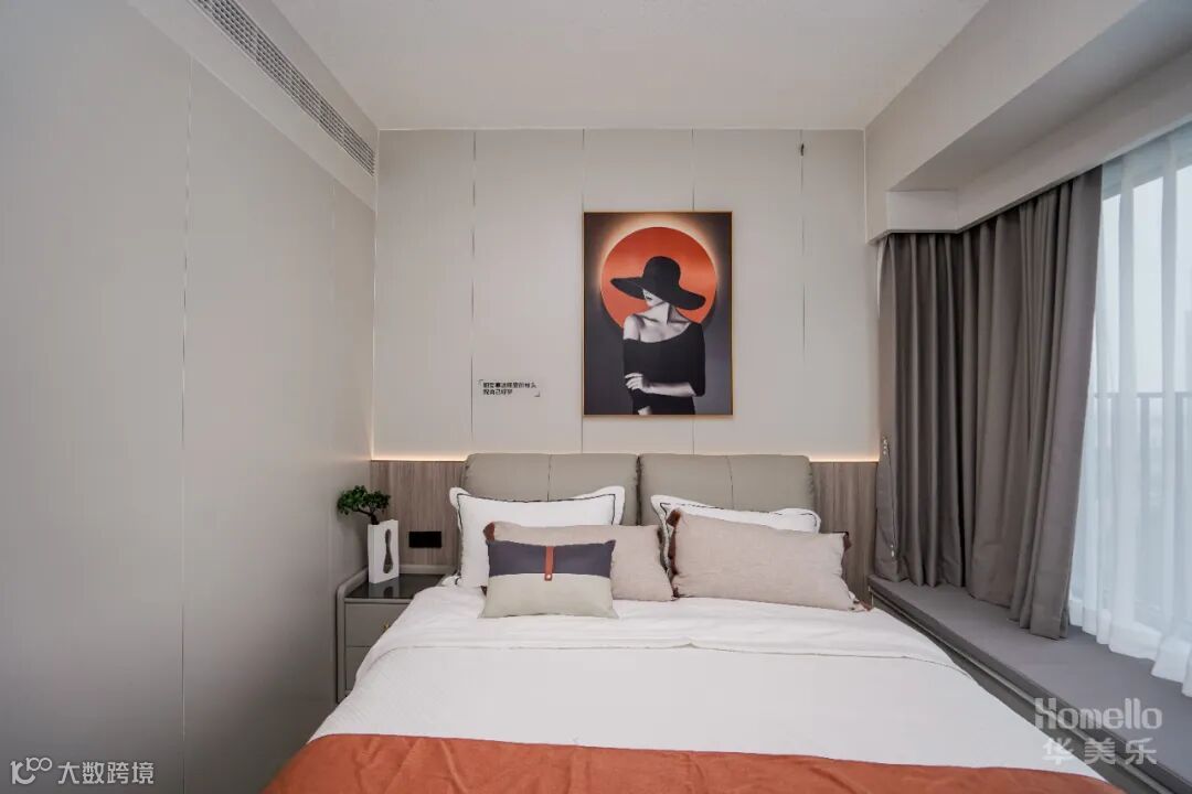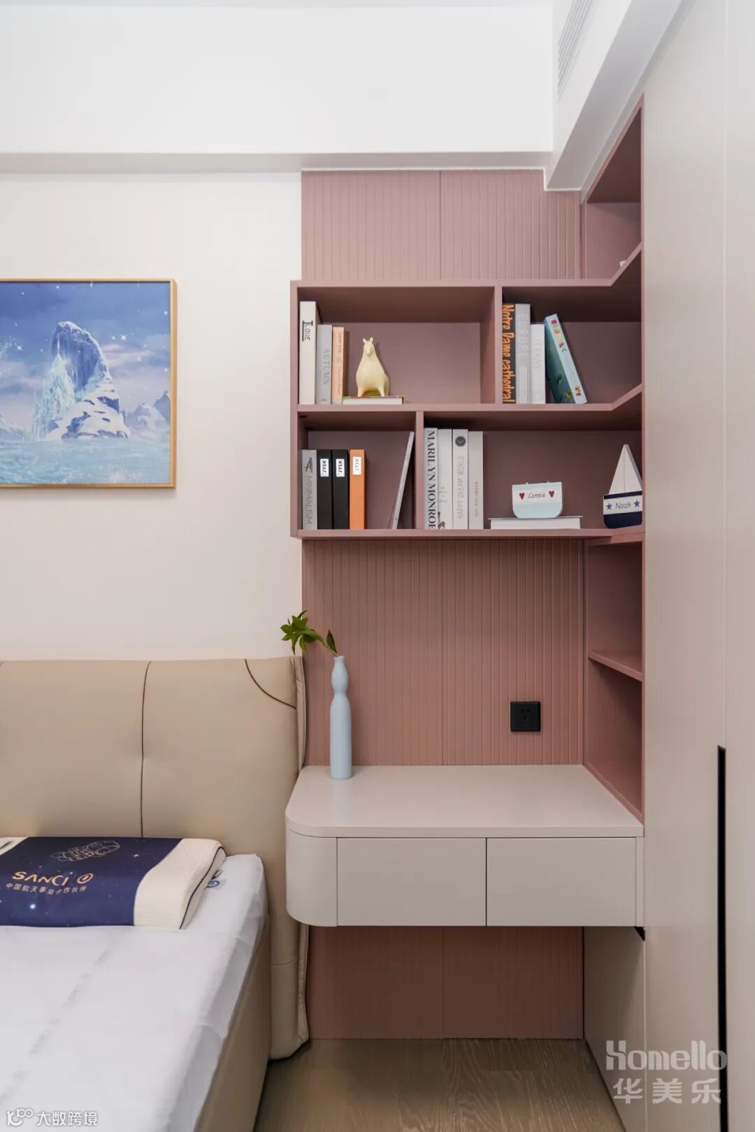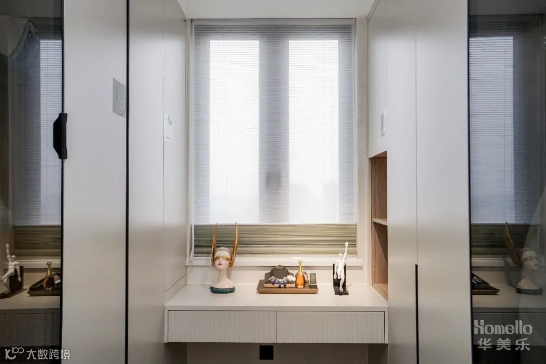 床旁隔出梳妆收纳区,创造更多的可能性。