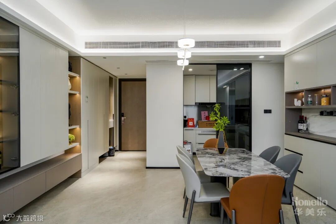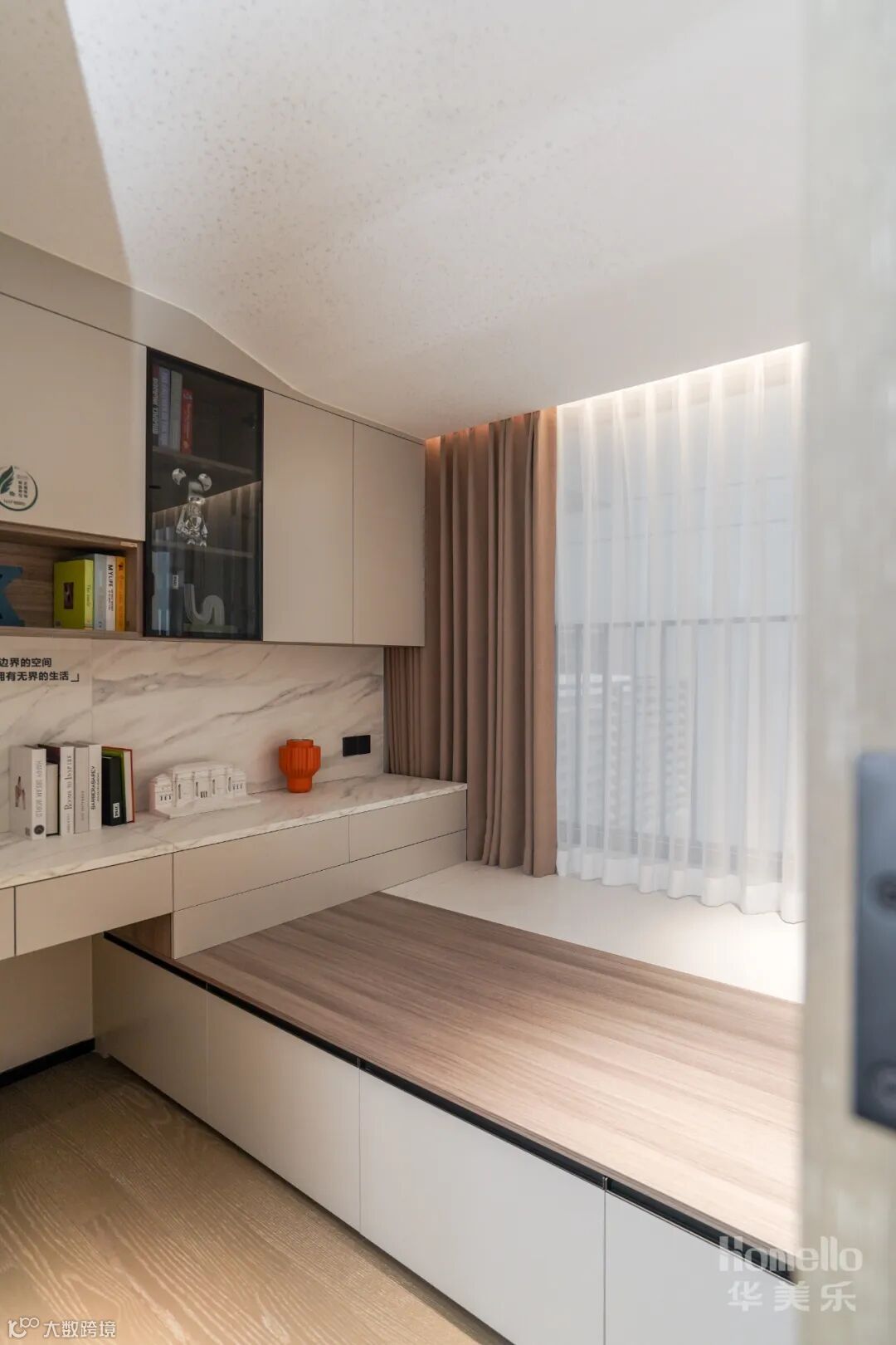 整体采用米色和灰色的配色赋予空间宁静的氛围。化繁为简,打造宽敞、安全和舒适的生活环境。