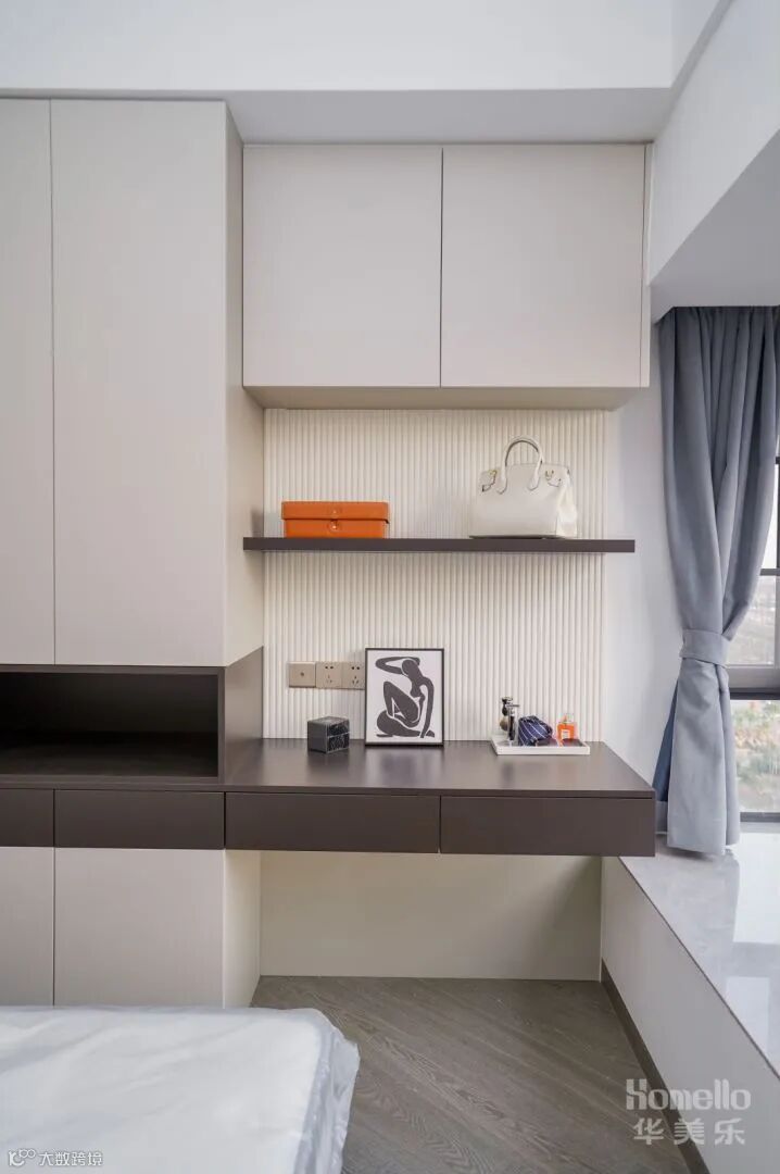 主卧定制柜在满足储物需求的同时,我们将柜子增加了一点设计感。