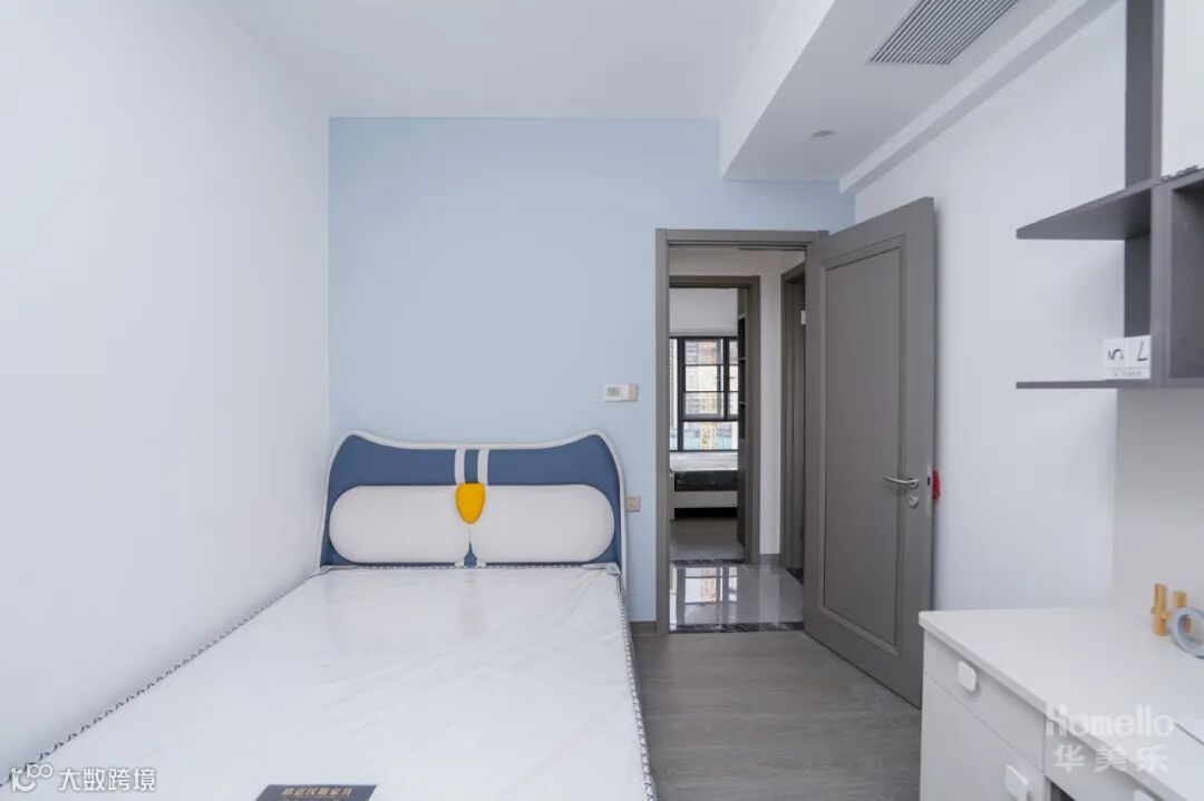 卧室门与电视背景墙颜色一致,融为一体,使整个空间整体更大气。