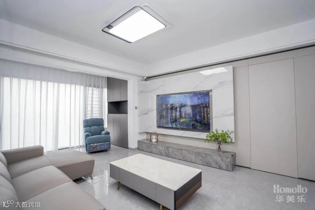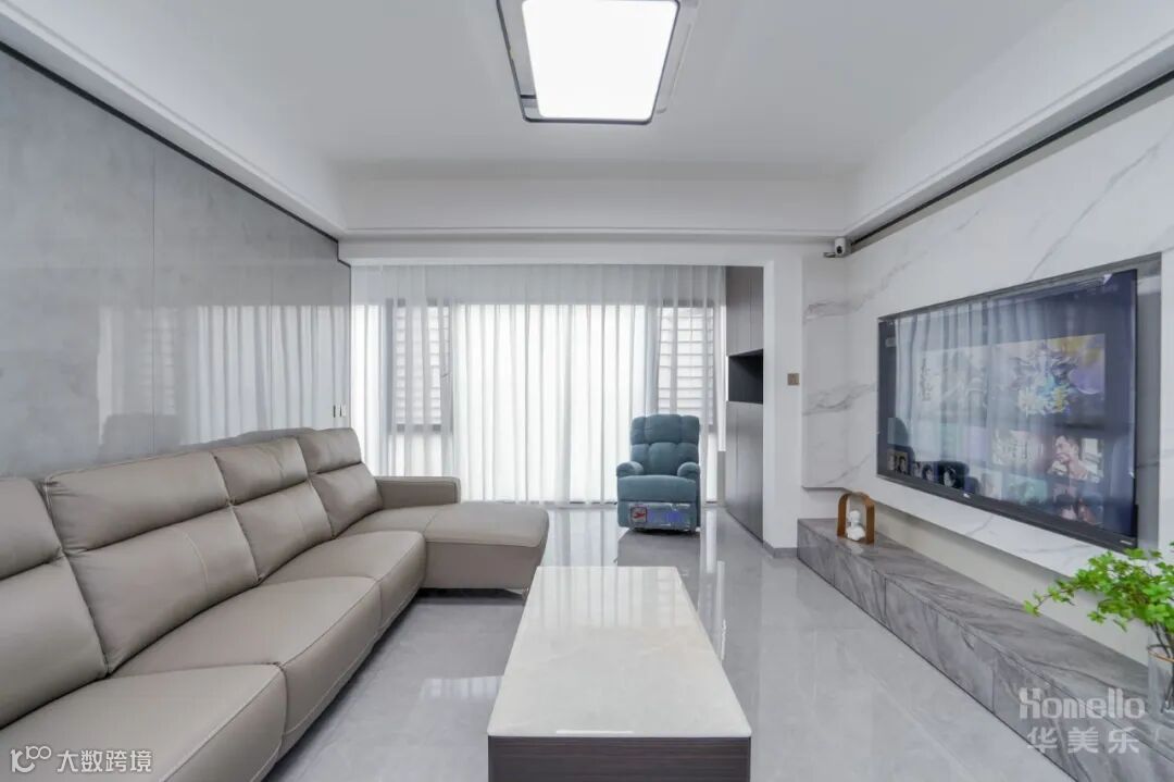 客厅与阳台打通相连接,扩大舒展空间,化解生活区的拘谨感,