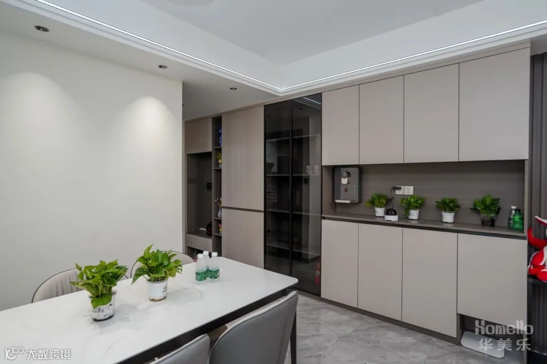一进门视觉上就感觉通透大气。空间各自独立却有着整体的功能连接。客餐厅贯通一体,视野通透,加之阳台带来的良好采光,让整个空间都明亮有佳。