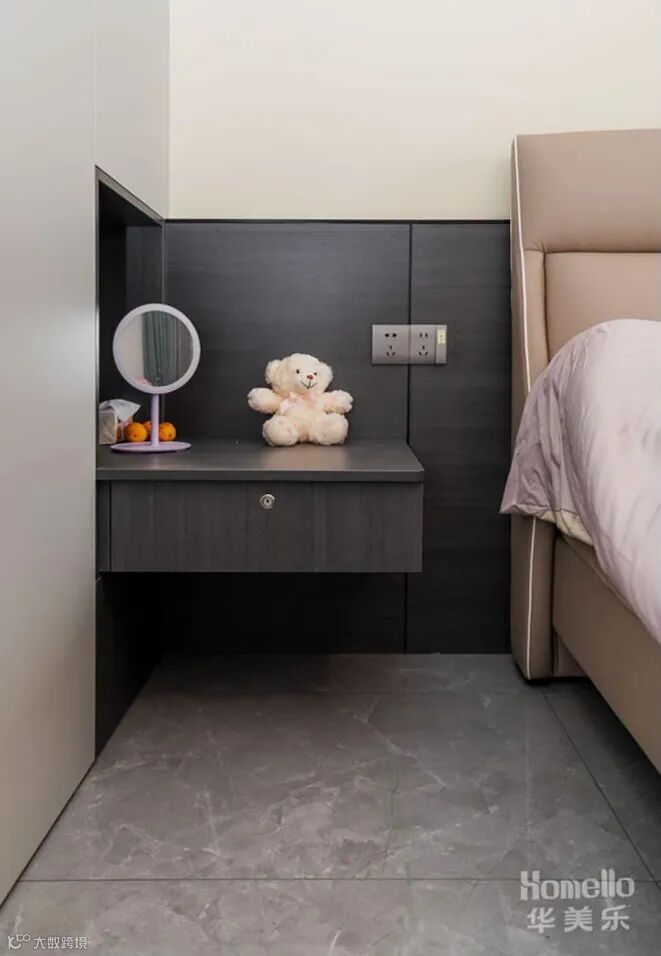 · L型衣柜阻隔了主卫与床相对,让睡眠更深沉。