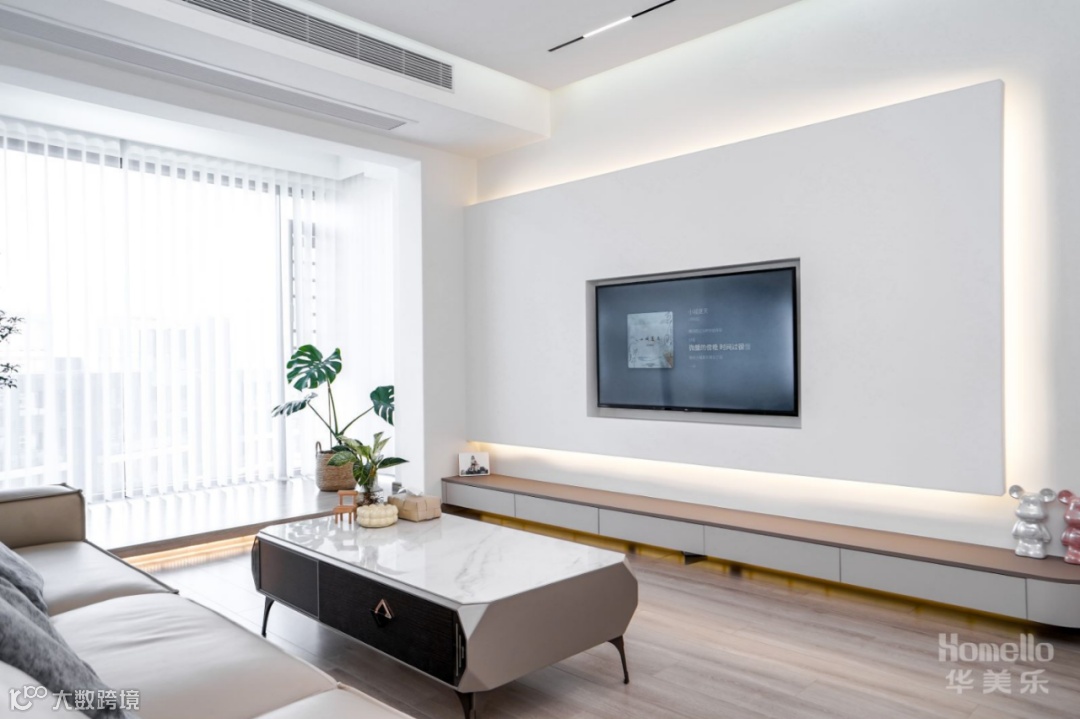 空间整体以素雅纯色作为底色,简练线条修饰空间,搭配低饱和系软装,将空间的清简与明媚平衡得当赋予简约之家不一样的魅力。阳台与客厅无界限、开放连通,让公共区的视觉效果更加开阔,家给人的感觉更加放松与灵动。