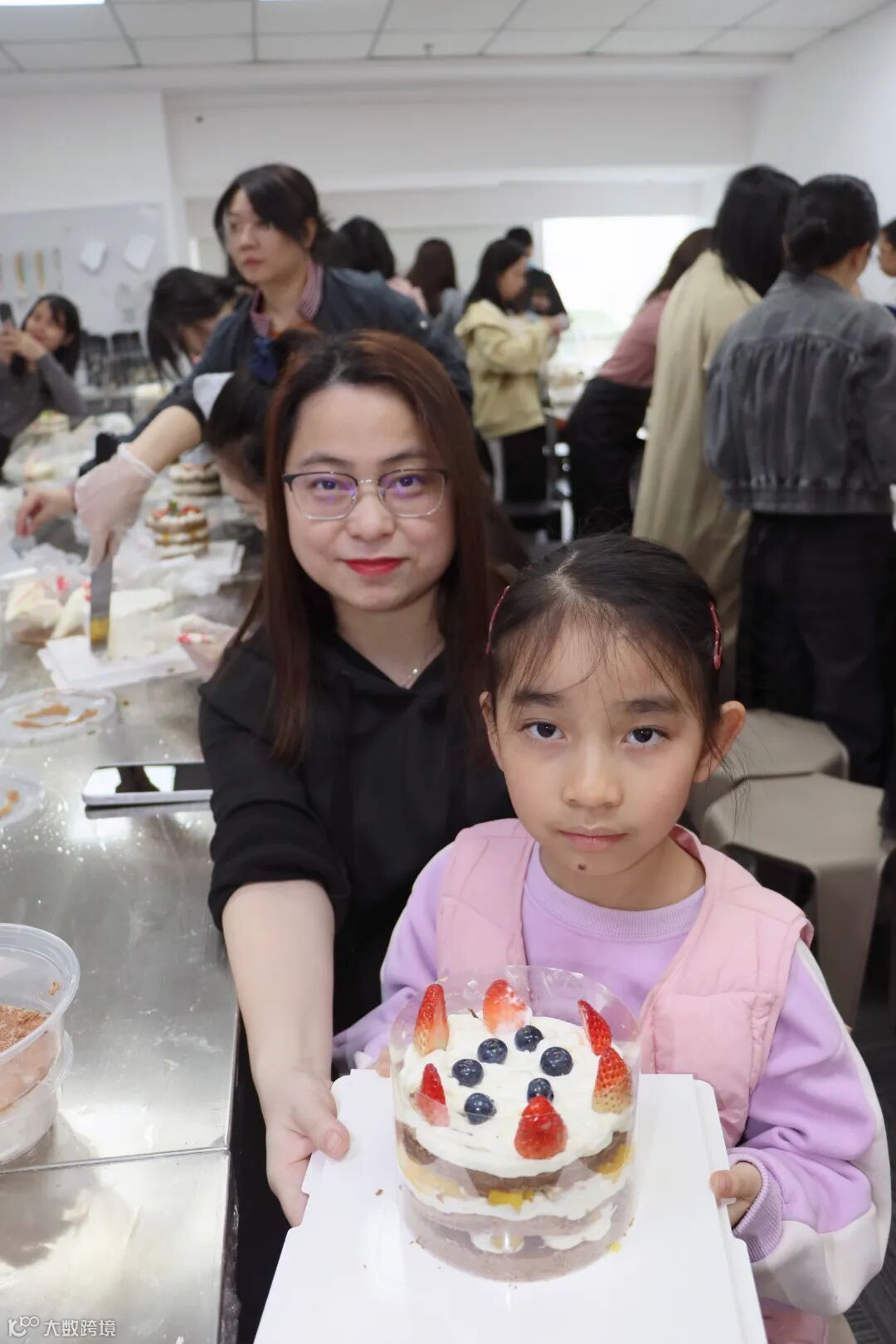 随着时间的推移,一个个色彩缤纷、造型各异的水果蛋糕逐渐成形。有的蛋糕上摆满了鲜艳的草莓和蓝莓,仿佛是一片小小的果园;有的则用薄荷叶点缀,清新而优雅。大家看着自己的作品,脸上洋溢着满满的成就感。