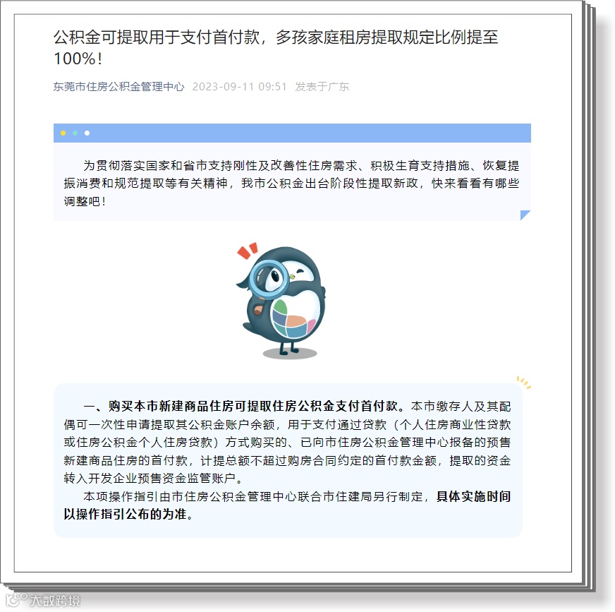 东莞住房公积金管理中心发布新政