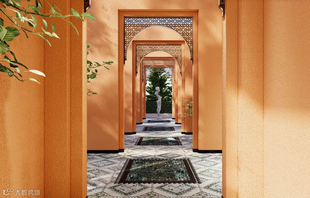 再配合地面色彩斑斓的拼接马赛克,让园林散步的每一步,都显得足够特别。