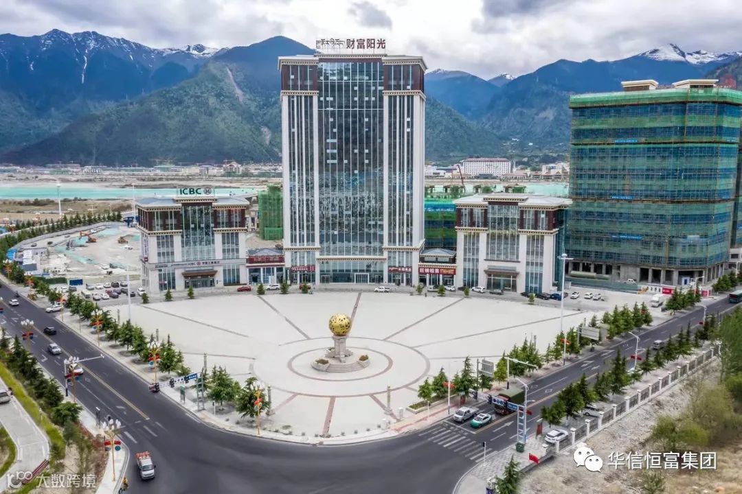 2015年公司在雪域小江南林芝投资开发建设了首席5A甲级写字楼、五星级精装公寓——“财富阳光”,该项目成功为“中国工商银行林芝分行”量身定制了整栋高端楼宇(图左栋),19层的商业综合体楼已于2019年6月22日圆满交房。