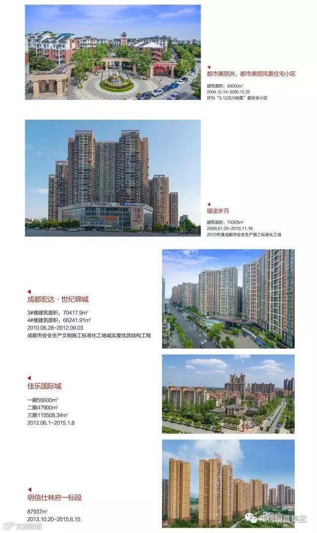 以信为道 品质至上: 集团旗下四川华信恒富房地产开发有限公司,成立于2008年5月,主要从事房地产开发经营业务。公司秉承“以信为道,品质至上”的开发理念,继承了华信建设视建筑为艺术,是凝固的音符,只做精品,惟精惟一的优良传统,立志将每一个作品打造成永久的丰碑!