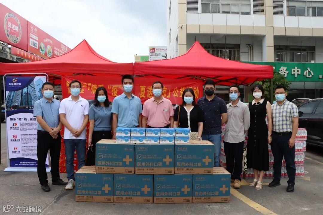 8月17日,金苹果控股与信立实业共同启动「情系“疫”线,夏送清凉」公益活动,向东莞信立国际农产品贸易城内的农批商户、快递物流、环卫安保等一线工作人员送上解暑饮料、口罩等防疫降温物资,并贴心叮嘱各位在做好个人防护工作的同时注意避暑解渴。