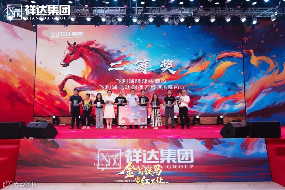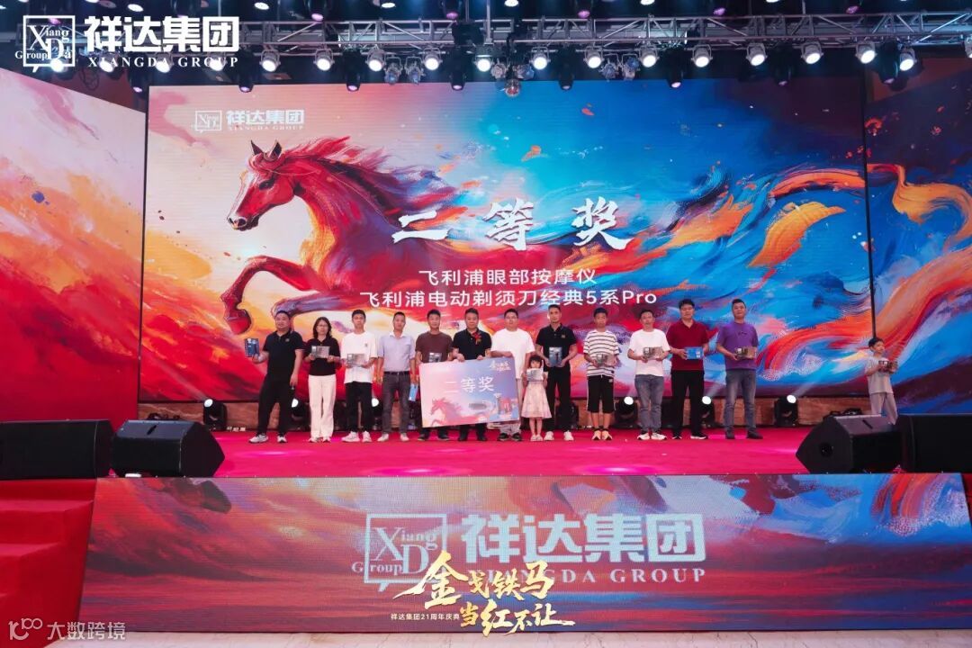 是夜,华灯璀璨,祥达“当红之夜”燃情上演。精彩的歌舞点燃全场热情,欢呼与掌声交织成动人乐章。一轮轮惊喜抽奖将晚宴推向一个又一个高潮,幸运的家人们、朋友们满载而归,笑容洋溢。