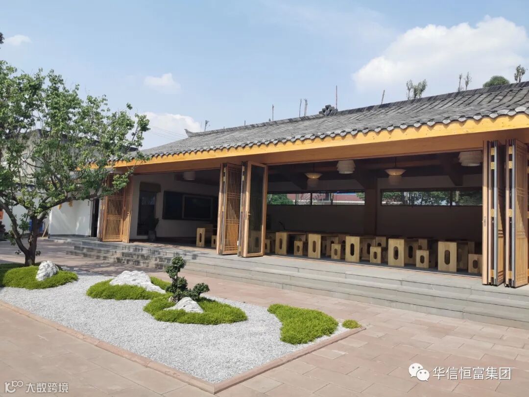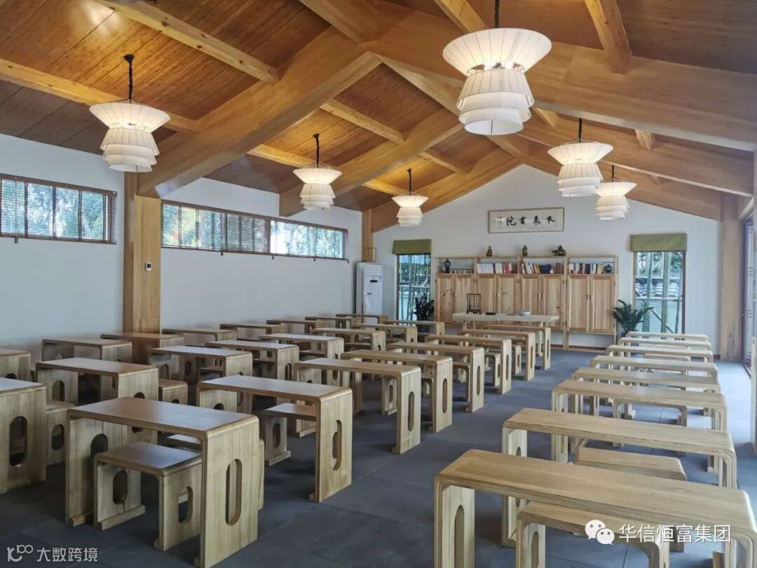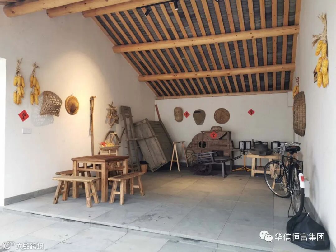 在三合院东侧,新建“本来书院”及农耕文化农具展示屋,左前方入口加建“归去来兮”亭,融合中国儒释道文化。