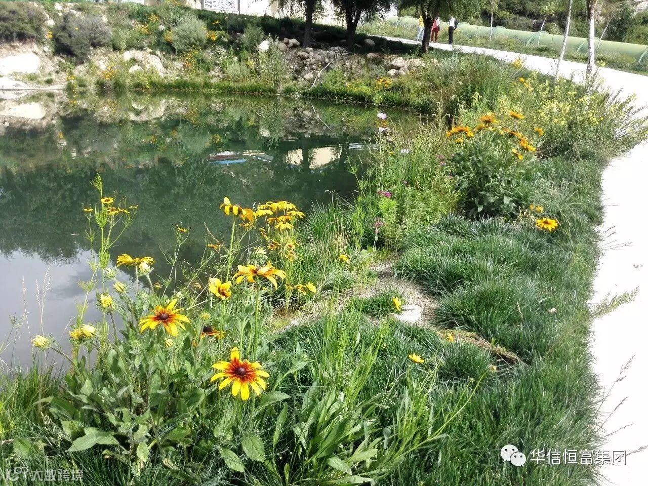 电站外碧绿清澈的池塘换上了美丽的新装