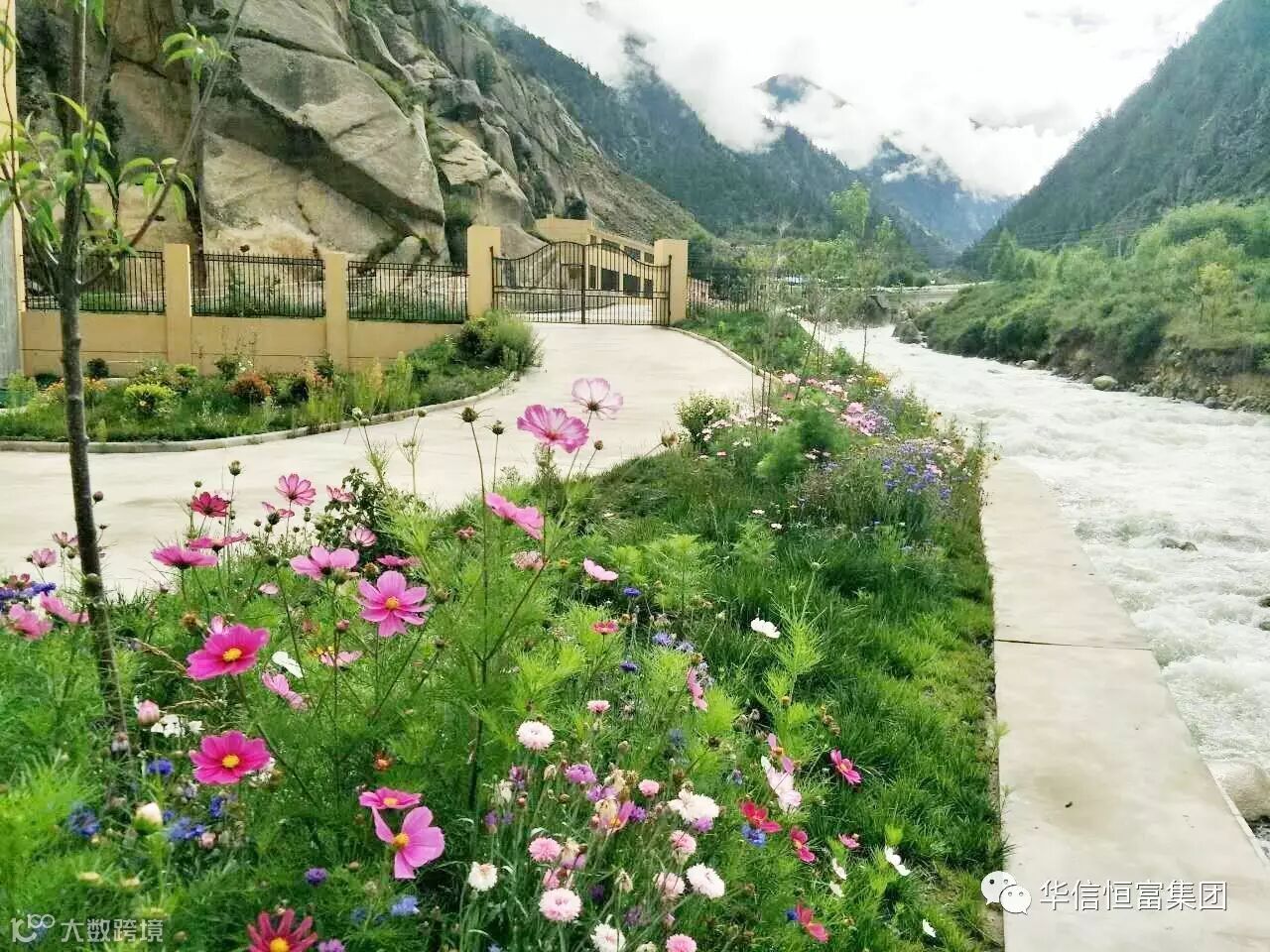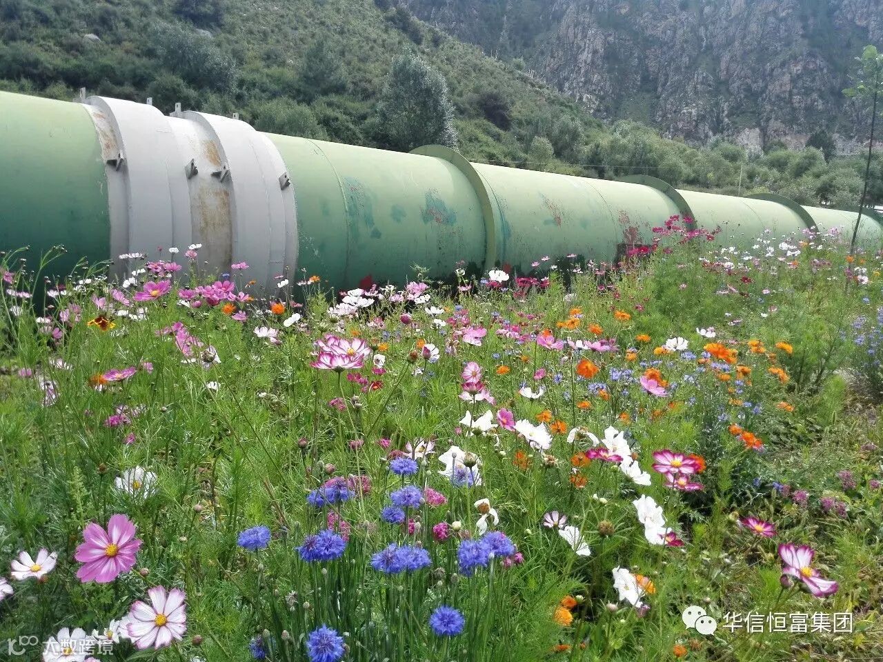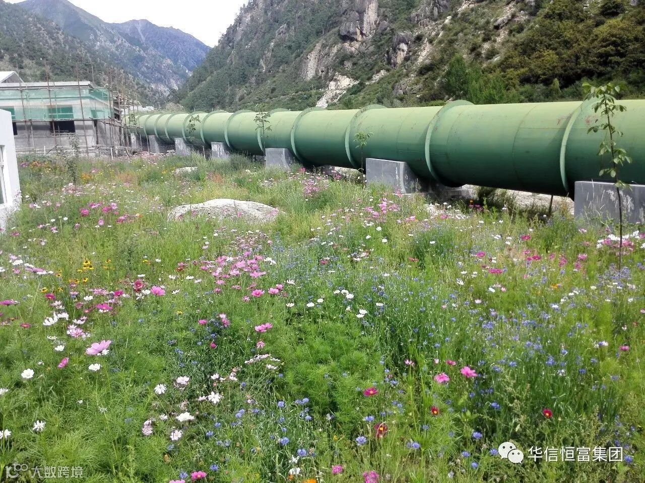 电站沿线压力管道周围格桑花争奇斗艳,楚楚动人,让你感觉置身花海之中。
