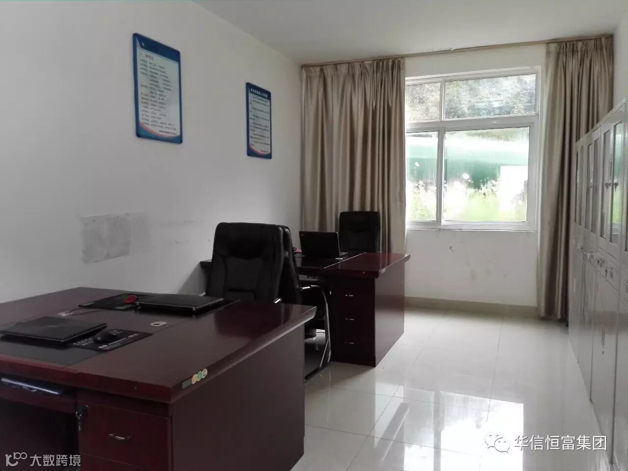 办公室明亮整洁,窗外格桑花争相开放