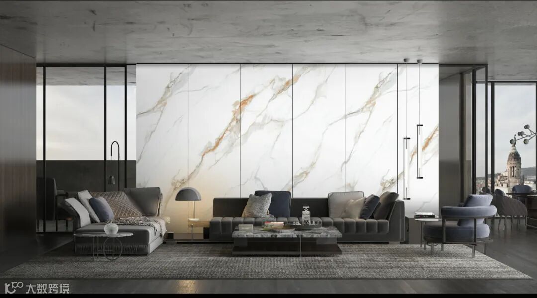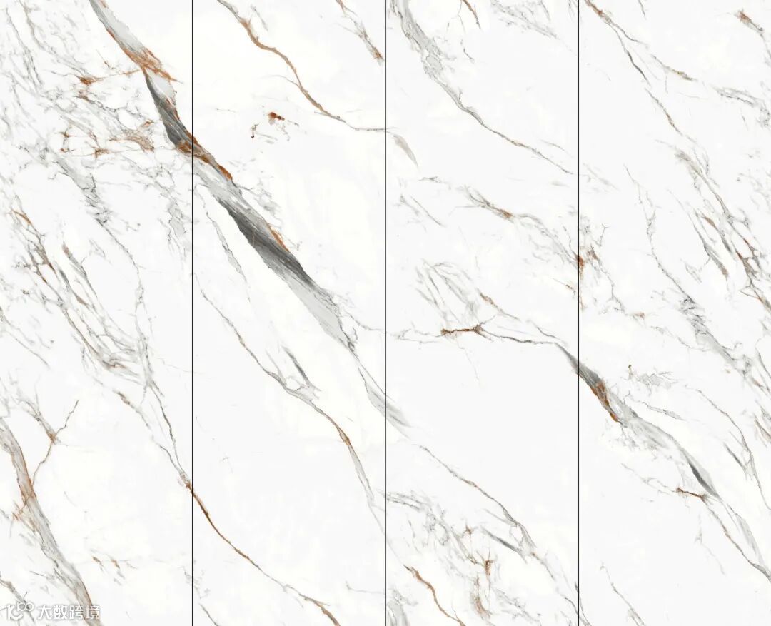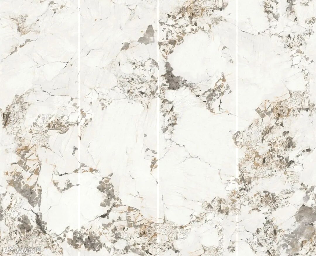纵横的金色与灰色纹理混合点缀在白色上,素雅澄净,朴实简单的色彩,蕴藏着厚积薄发的艺术力量,润泽柔和的肌理,打造出极为高级的视觉效果,成为现代空间中最令人挪不开眼的那抹亮色。