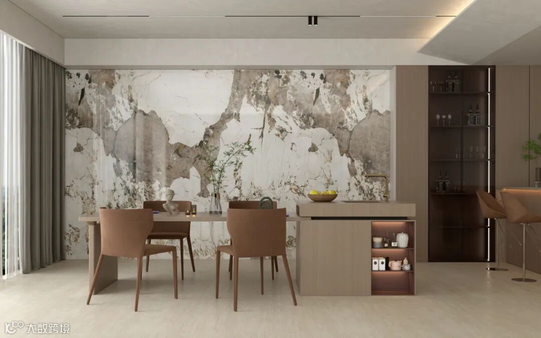 优雅的纹理深深刻印,比起山脉,更像礁石。海水一遍遍冲洗留下了时间的痕迹,这是大自然的神奇配色,自成意蕴,勾勒出惬意舒适的家居氛围。