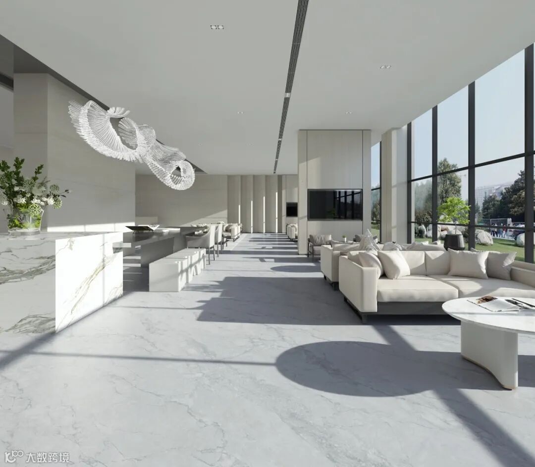 柔和而清浅的灰色笔画,在白色的砖面上恣意勾勒,戛然而止,自然留白。层叠的纹理,像极了白雪皑皑的雪山。精细的肌理,细腻又柔和,不仅能增加空间张力,还能提升整体气质。