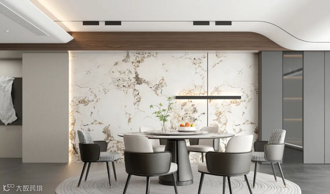 沉稳敦厚的灰色,将理性成熟与浪漫优雅完美契合,细腻流畅的白色流动线条,演绎出独有的细腻质感,为空间注入流动的美感。