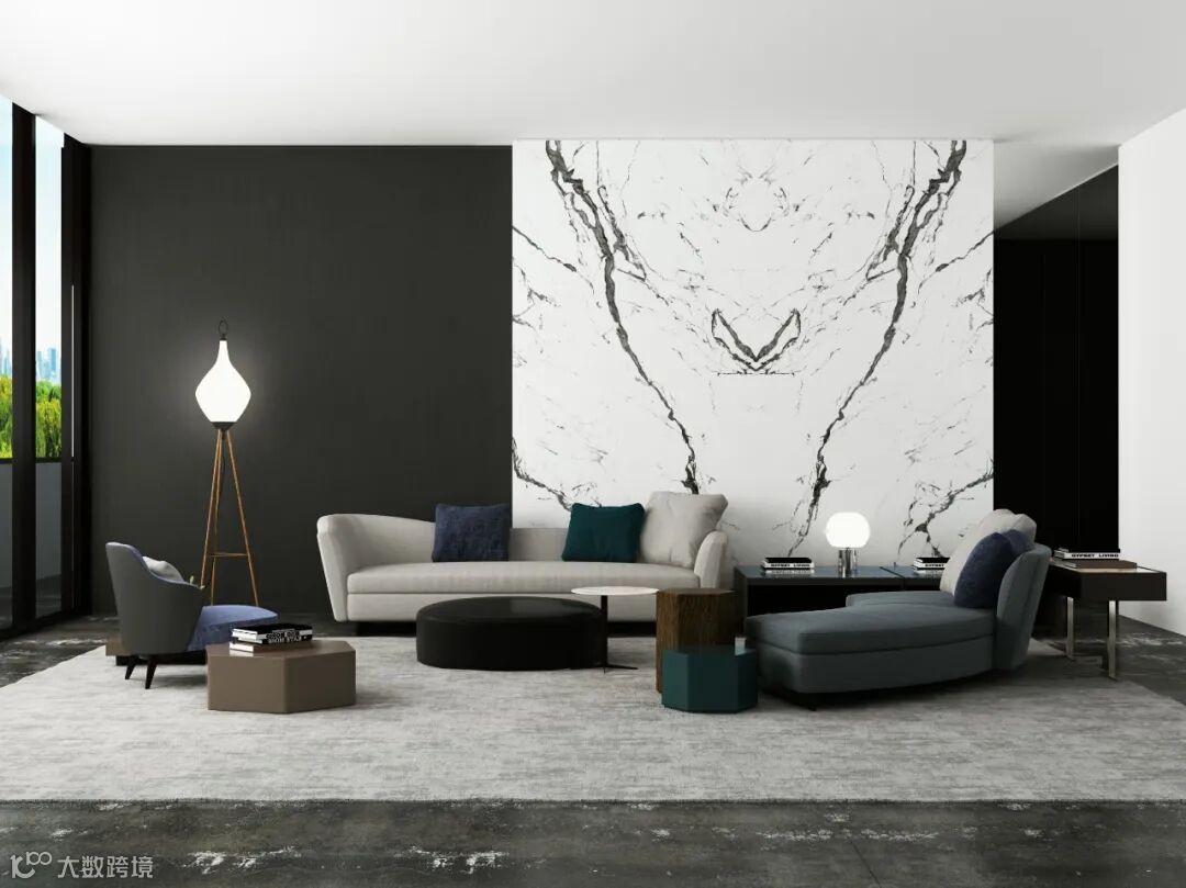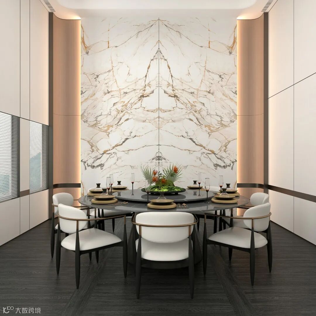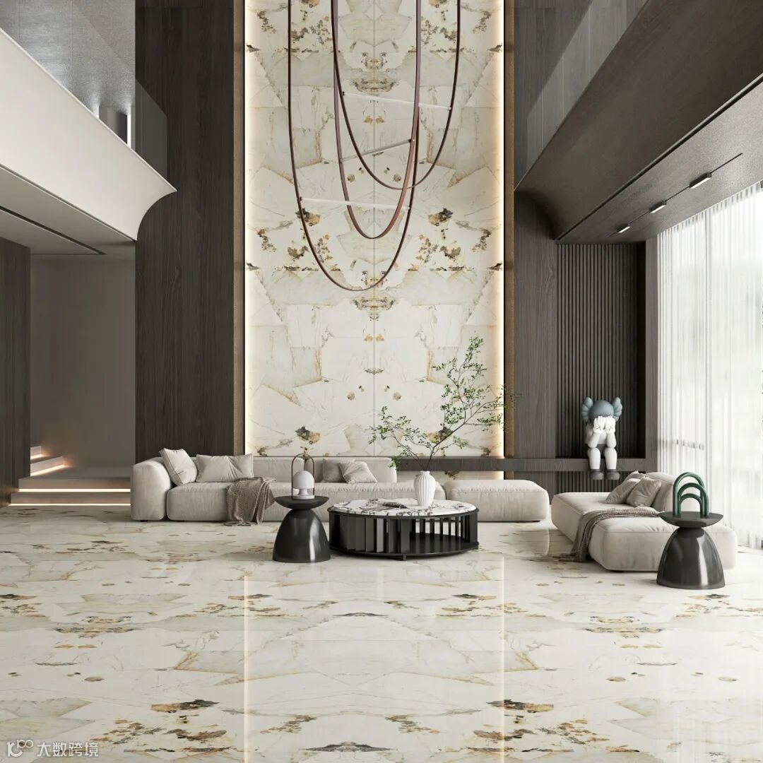 复刻天然石材的立体观感和逼真触感,纹理错落有致,疏密有度且留有大片留白,对称两面,铺排更为大气;细腻刻画出皇家卡拉卡塔天然纹理的高雅和润泽。