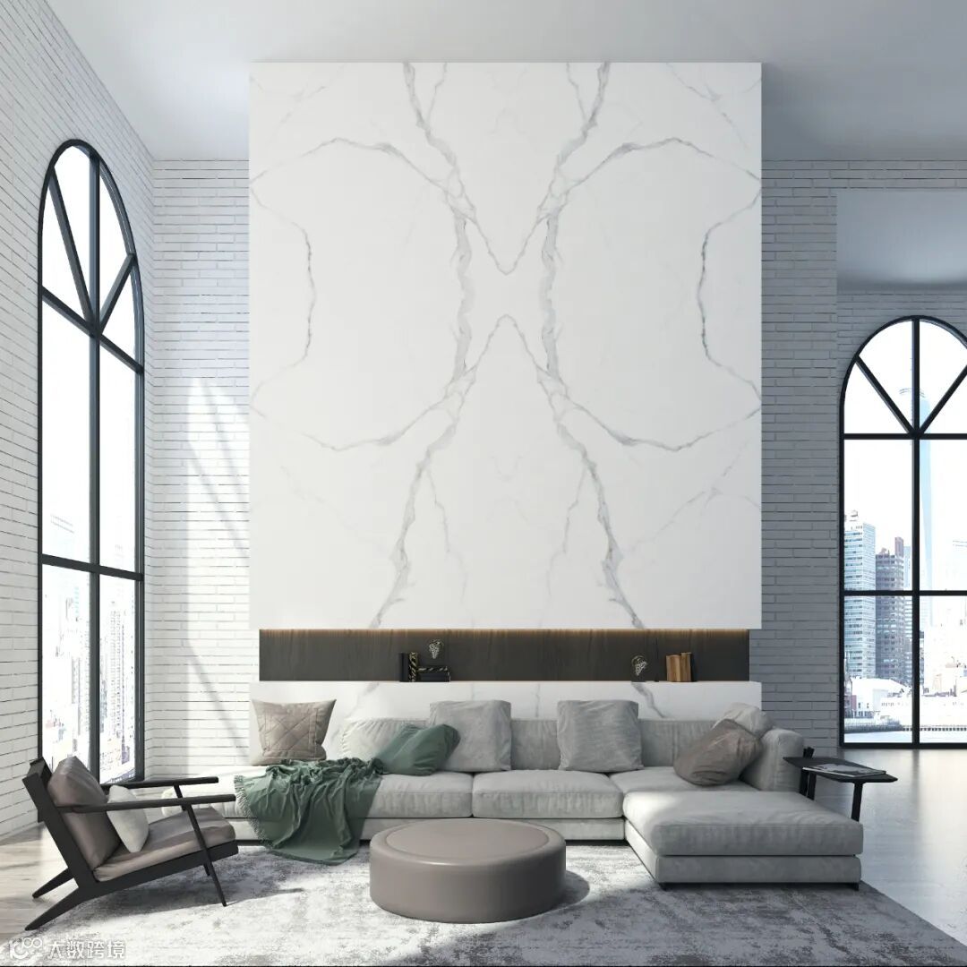 灵感来源于意大利顶级白玉,洁白底色通透而有玉质感,不规则的灰色与白色晶体,宁静而灵动,绵延的纹理随性游走,自带一种高贵典雅的独特纹理。