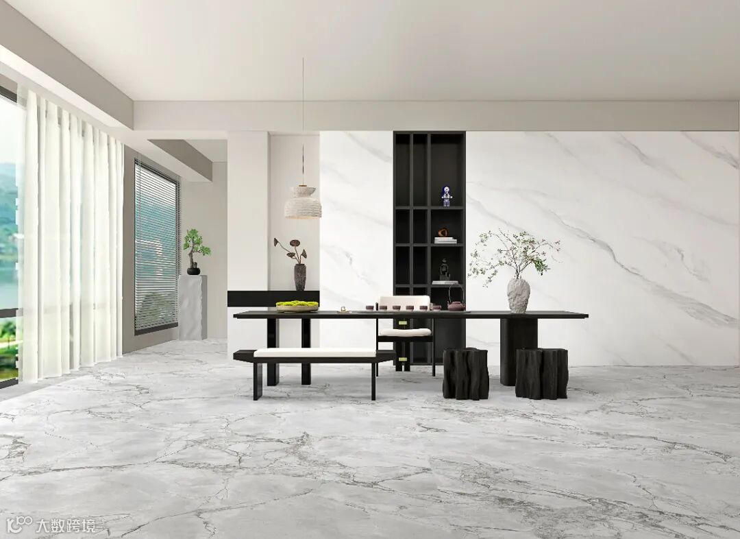 柔和而清浅的灰色笔画,在白色的砖面上恣意勾勒,戛然而止,自然留白。层叠的纹理,像极了白雪皑皑的雪山。精细的肌理,细腻又柔和,不仅能增加空间张力,还能提升整体气质。