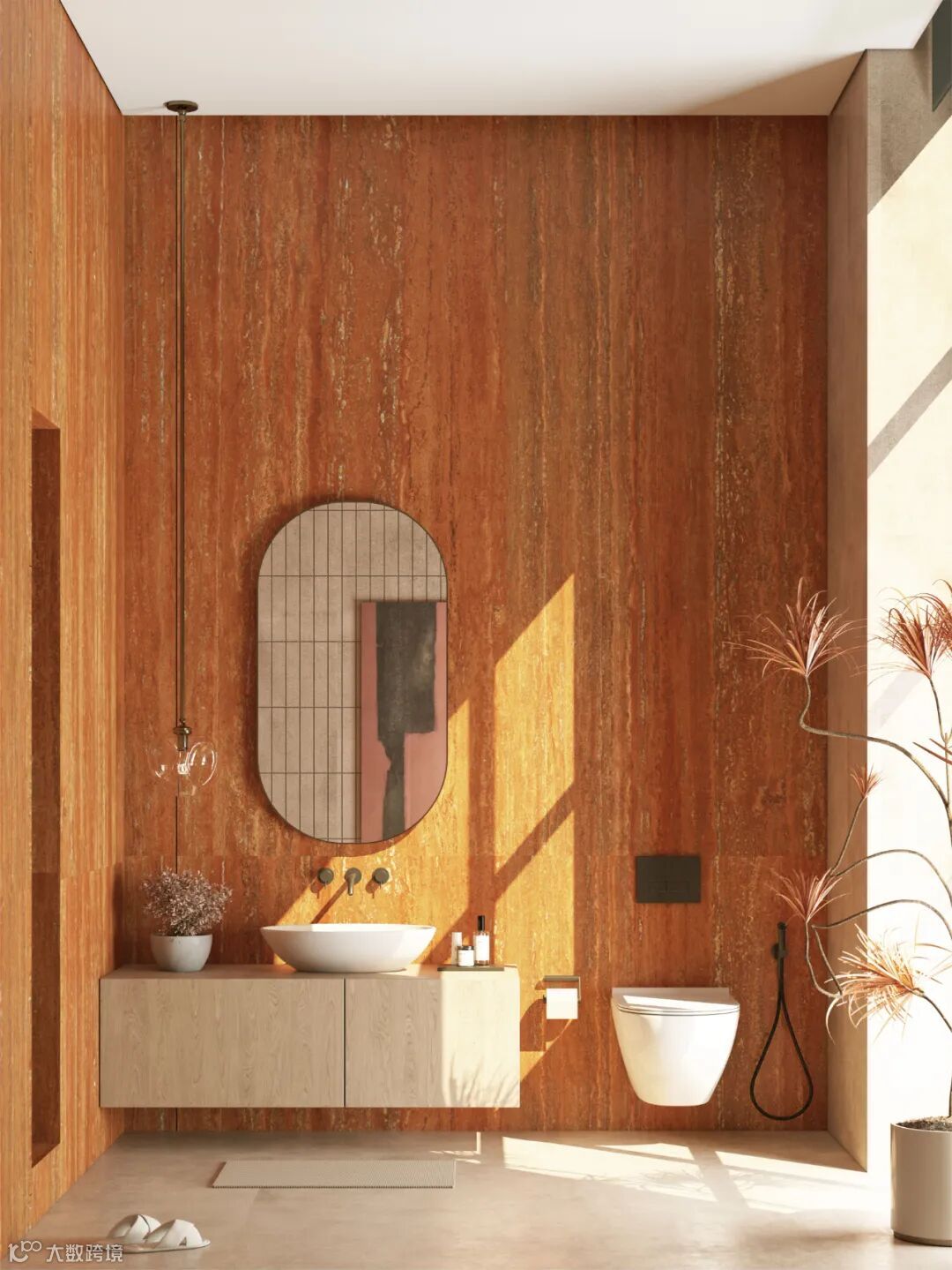 柔哑面岩板表面有一层釉面的保护,易清洁,无需操心表层被刮伤而影响美观,卫生间、阳台、楼梯踏步等空间都能适用。