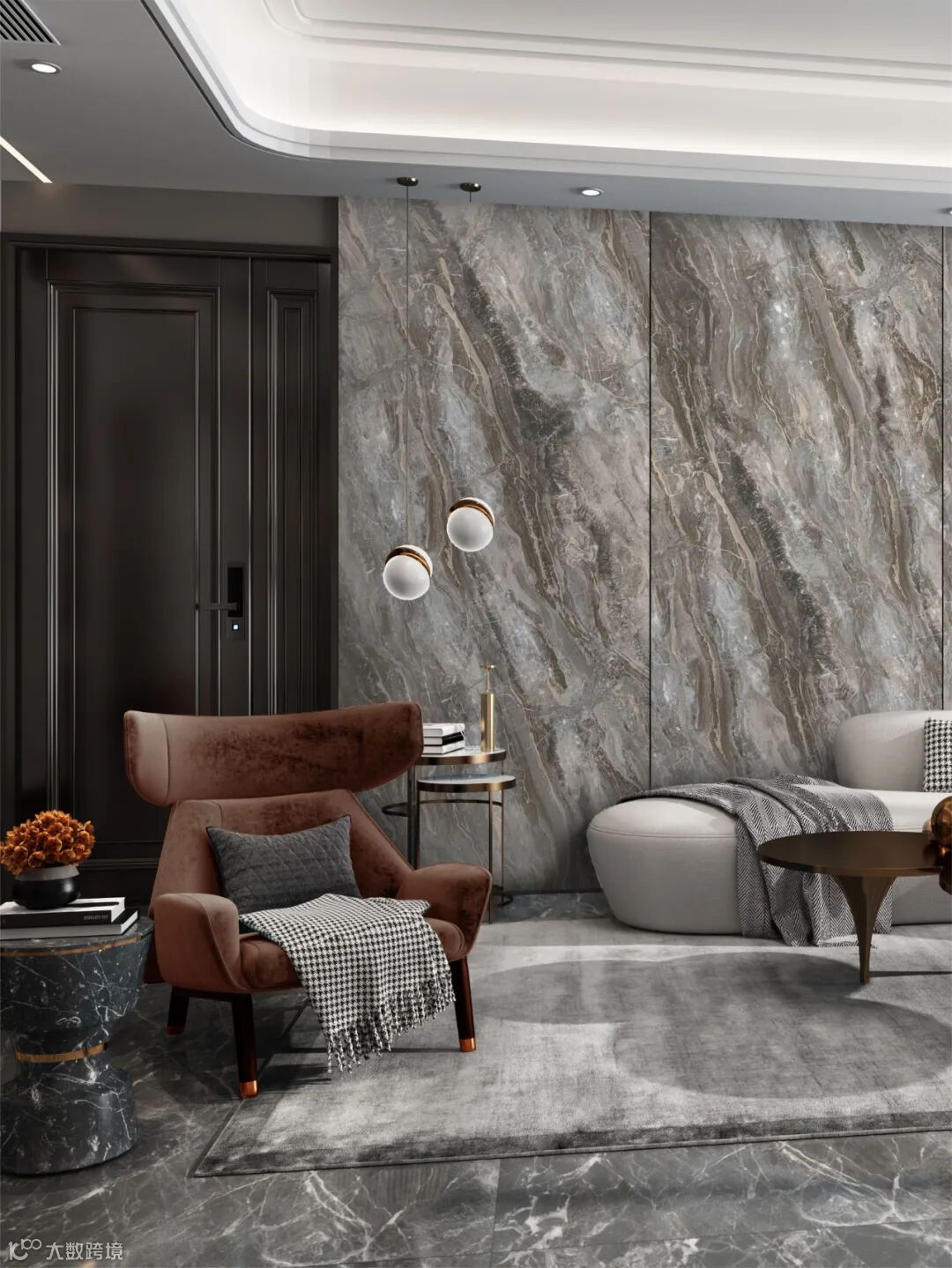 威尼斯棕的色彩沉实而丰富,由深浅棕色和灰色作为主调,糅合微量的白色和金色形成多变、独特而略带狂野的纹理。视觉效果跳脱而富生命力,自成一种气派与格调。搭配其他简单的设计元素,威尼斯棕就能轻易点缀整个空间,融优雅与魔幻于一体,具有强烈的视觉冲击力,能提升整体格调和气场。