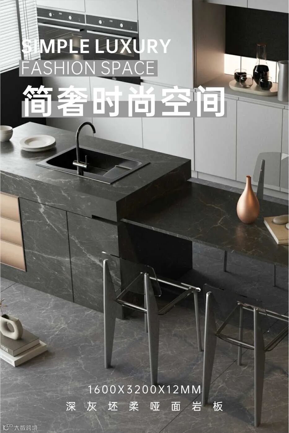 应用于厨房岛台简约大气、细腻温柔。