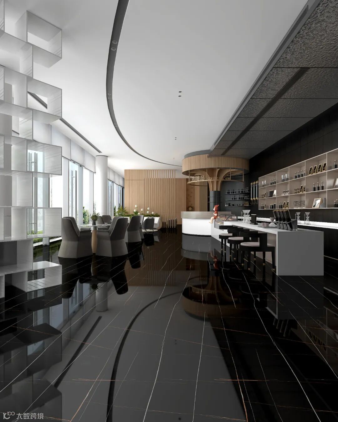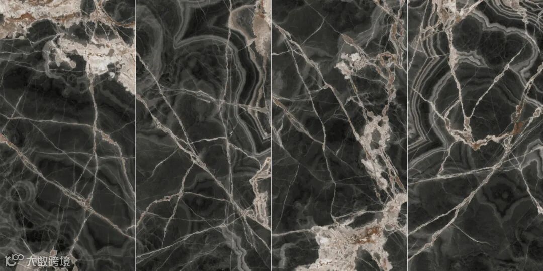 灵感来源于珍稀宝石的精妙质感,以黑色为底色,质地如同玉石般晶莹透亮,如袅袅轻烟的白肌理弱化了黑色的沉重,白中带金的纹理灵动地分布于表面上,层次丰富自然,它与生俱来的霸气赋予了空间神秘与高级感。