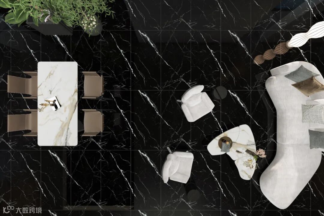 拿破仑黑,设计灵感来源于意大利的顶级天然奢石,夸张的黑白大花纹自由挥洒,纯粹的黑色肌底上,白色纹路盈动流淌,相互交织,呈现一种自然造物之美。黑之深邃冷酷,白之轻盈纯净,浓烈的色彩碰撞,给人强烈的视觉冲击。