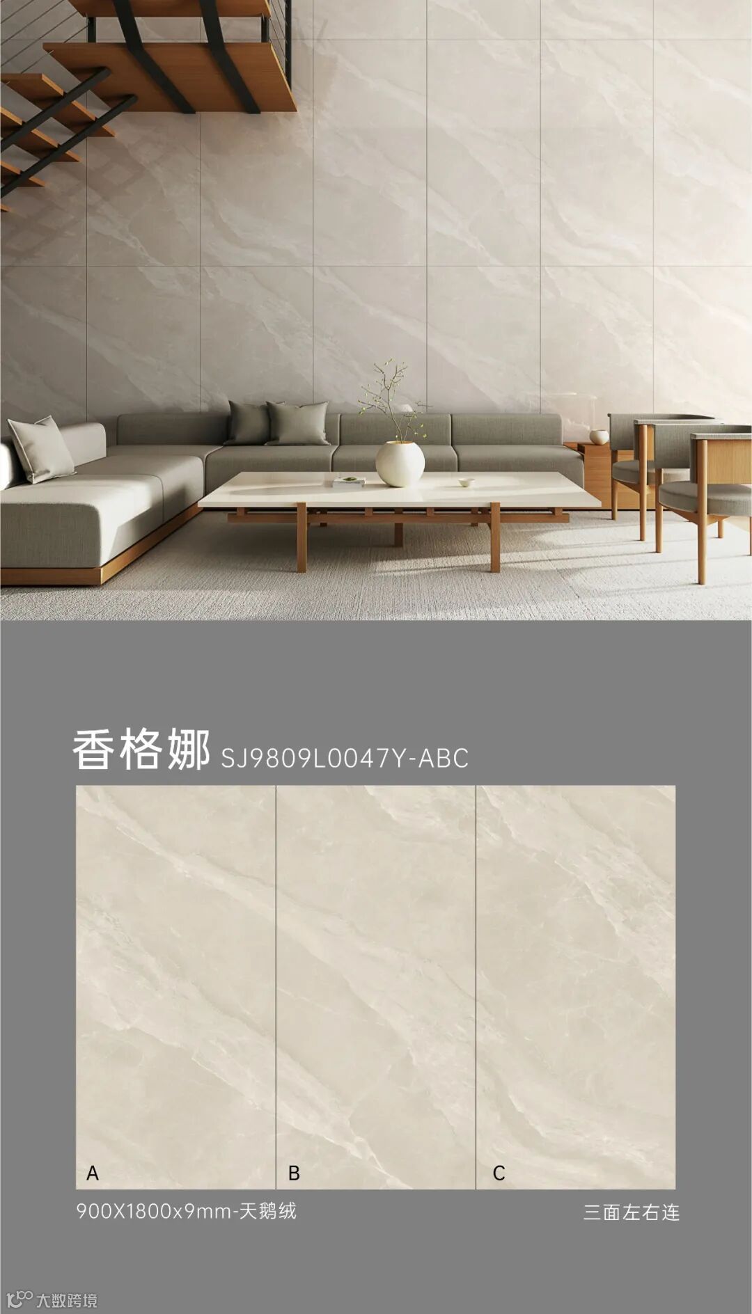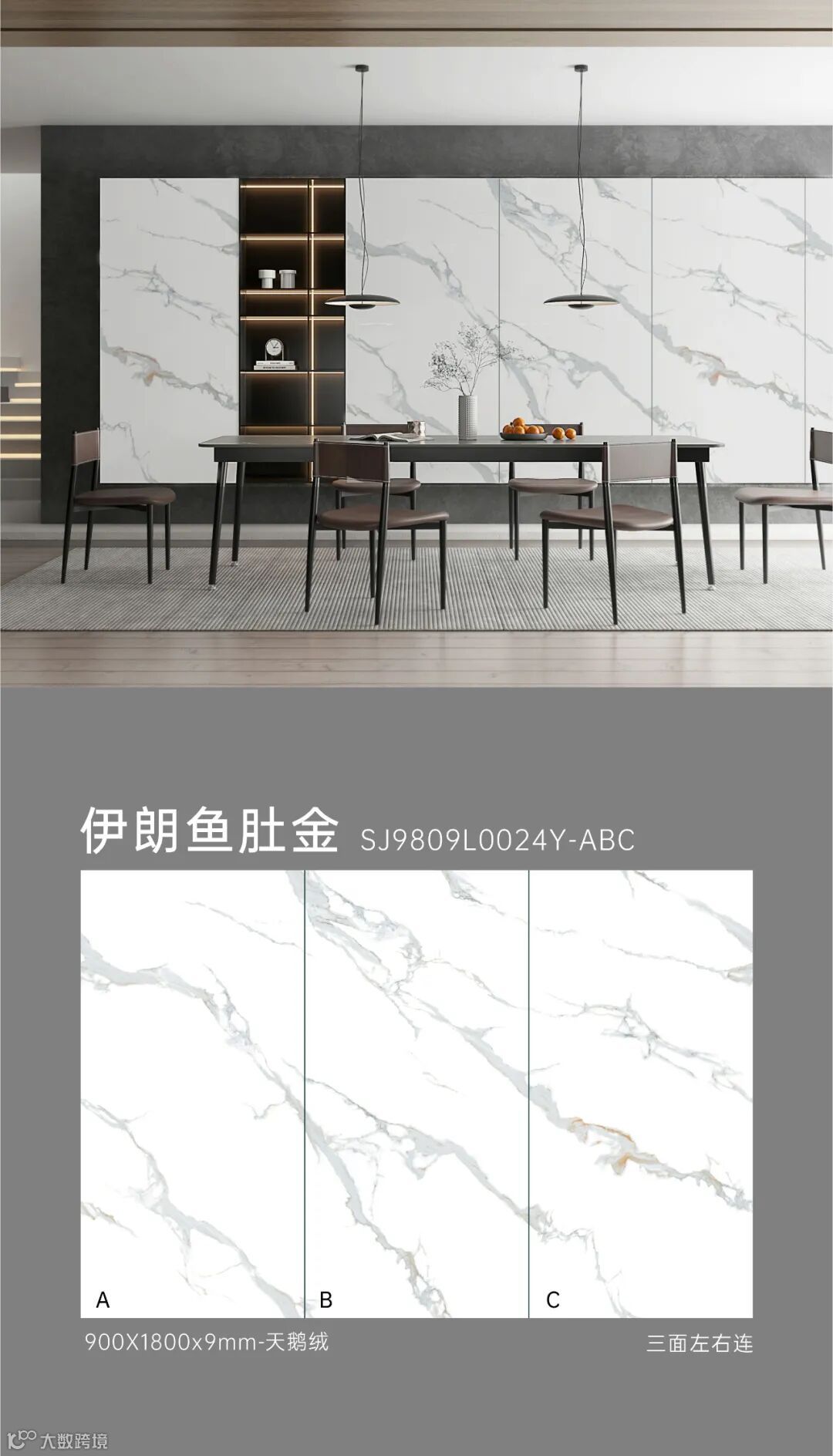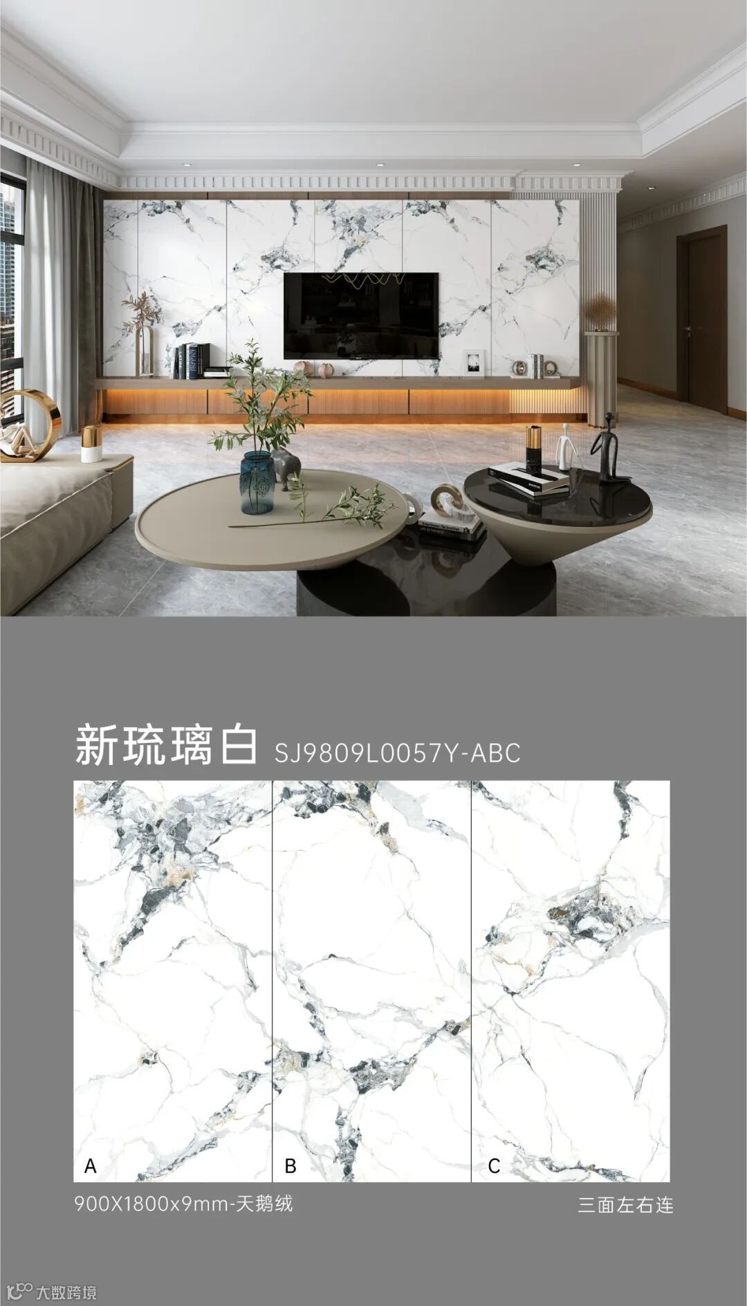 900X1800mm大规格切割应用效果更佳,以大视野,将世界流行设计演绎轻奢美学空间。