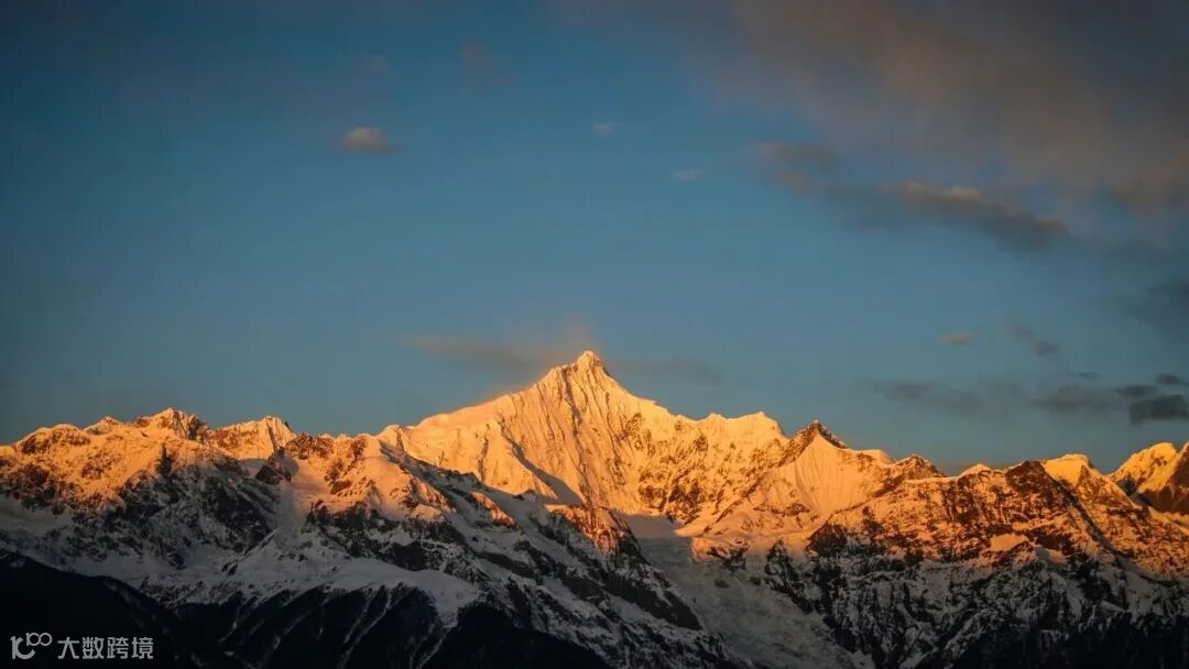 雪域中升起的晨曦,在高山峰巅折射出宛如霞光般的柔和光芒,犹如天地间洒下的一片祥和与美丽。投射出数千道细腻的光线,仿佛与天空和大地构成了一幅绝美的画卷。