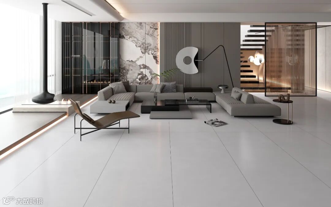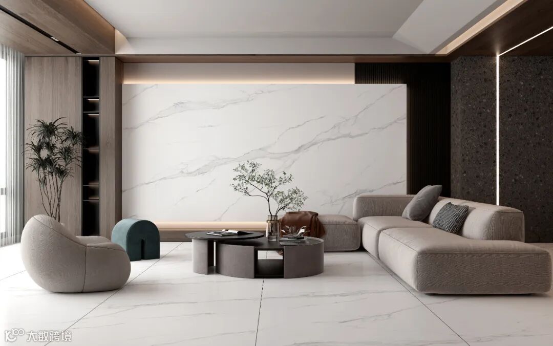柔和而清浅的灰色笔画,在白色的砖面上恣意勾勒,戛然而止,自然留白。层叠的纹理,像极了白雪皑皑的雪山。精细的肌理,细腻又柔和,不仅能增加空间张力,还能提升整体气质。