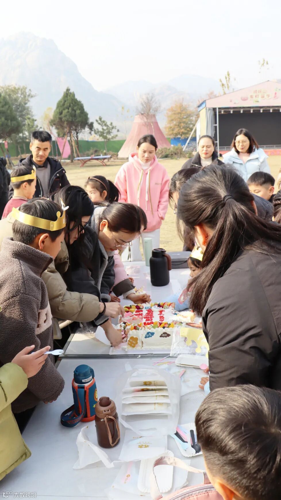 生日团建过程中一行人走进