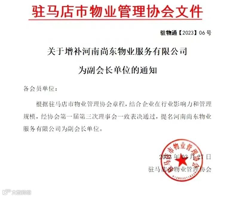 3月30日上午,驻马店市物业管理协会召开第一届第三次会员代表大会,驻马店市物业管理协会会员代表参与此次会议,会议中发出了“关于增补河南尚东物业服务有限公司为副会长单位”的通知。