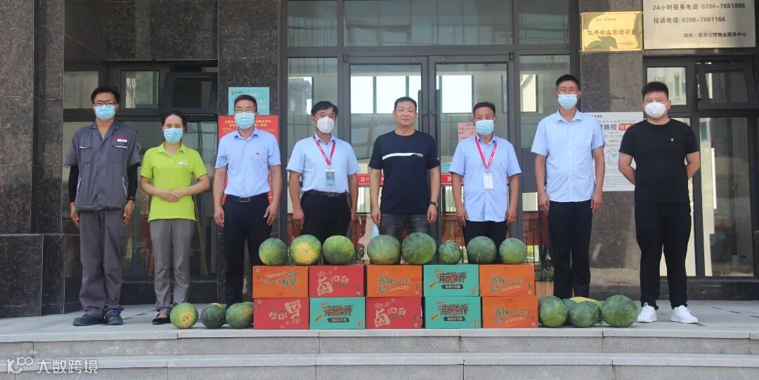 为保障员工的身体健康,切实做好防暑降温工作,8月8日,在做好疫情防控的情况下,尚东集团董事长常金安率队组织开展“送清凉”活动,慰问组先后前往尚东·壹号公馆、尚东·金御府、尚东·壹号院,为各项目物业办公处运送新鲜清甜的西瓜及方便面等物资,切实关爱、慰问奋战在一线的物业职工们!