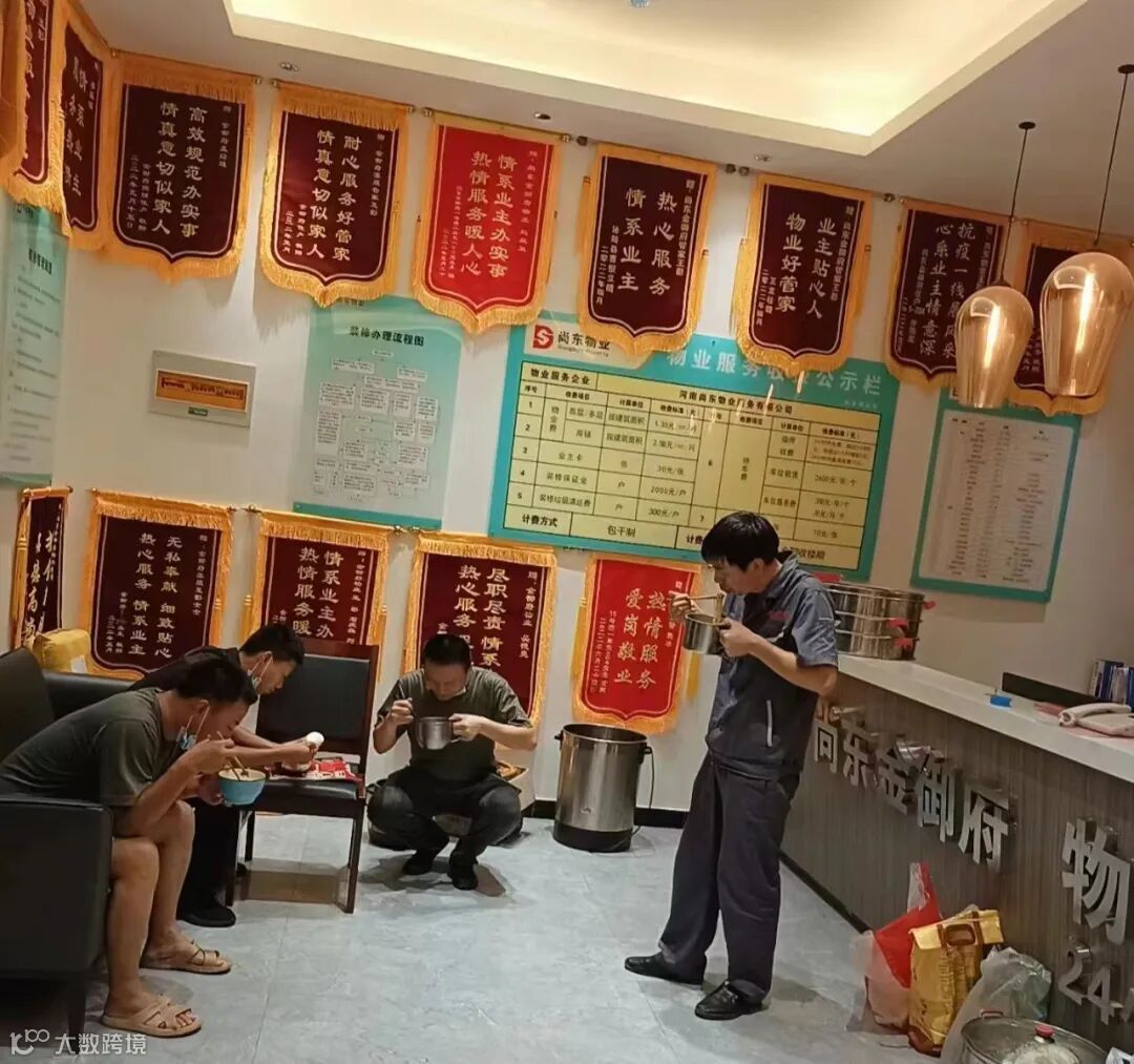 维护岁月静好,物业人负重逆行。尚东物业的工作人员当中,有许多是泌阳本地人,他们是父母、是儿女、是妻子、是丈夫,他们也有家人在封控中居家防疫,他们也有老人、幼子需要关怀照顾,但是在疫情之下,在工作职责面前,他们舍小家、顾大家,为了数千业主家庭的安稳与安全,在四十余度高温酷暑下挥汗如雨、往来奔波,将对疫情传播的恐惧深埋心中,全天候高负荷工作,累了就在办公室拼两张椅子,或打个地铺,饿时匆匆扒两口饭菜又投入工作,这样的坚守,只为争取防疫战斗的胜利,只为守护全体业主的美好家园。
